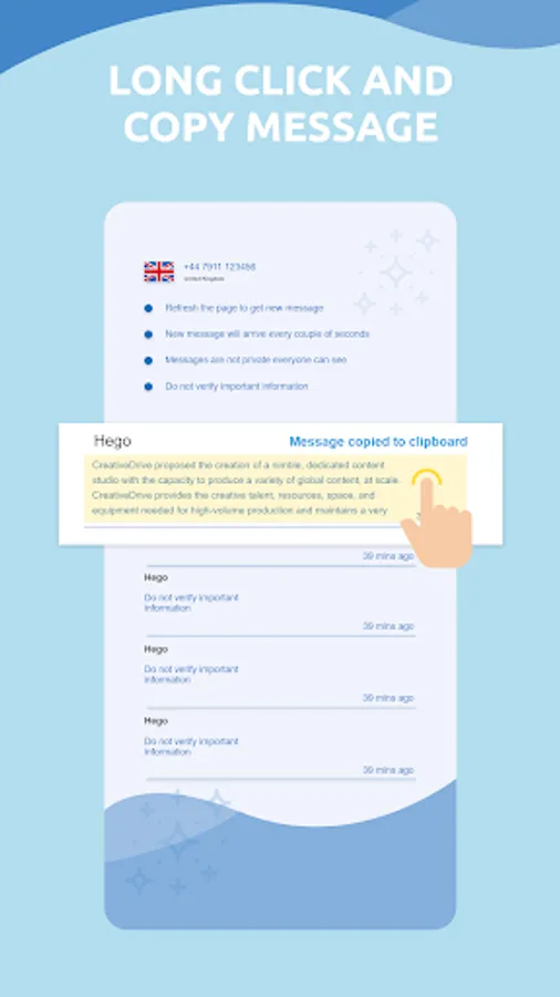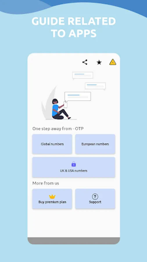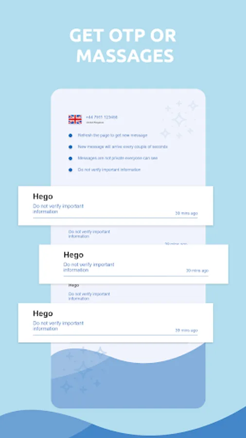 Receive SMS online app provides virtual numbers for receiving online messages, codes and OTP confirmation from all over the world. You can get virtual temp numbers for free and without any restrictions to receive SMS while registering on any website.