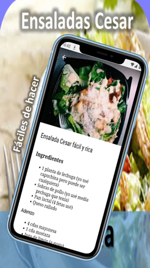 You will always have an app with Caesar Salad recipes in Spanish at your fingertips whenever you need it there you will have it.