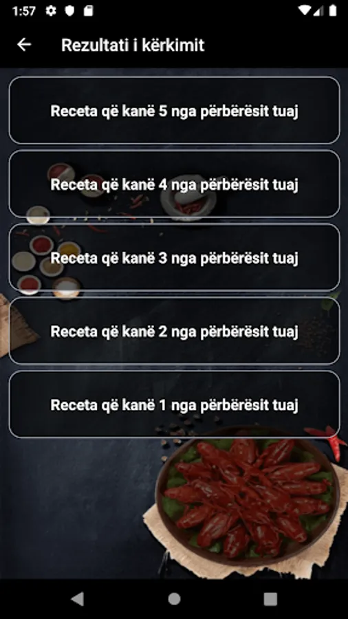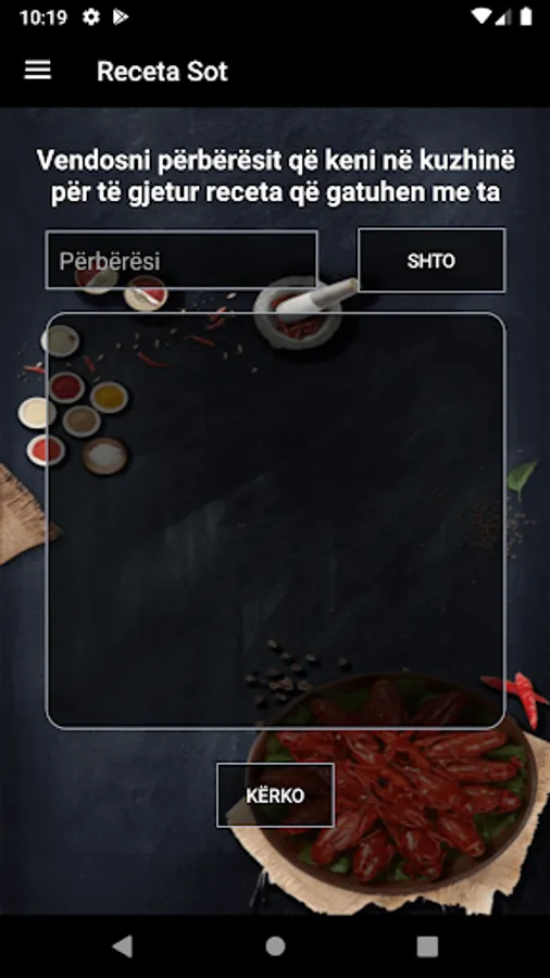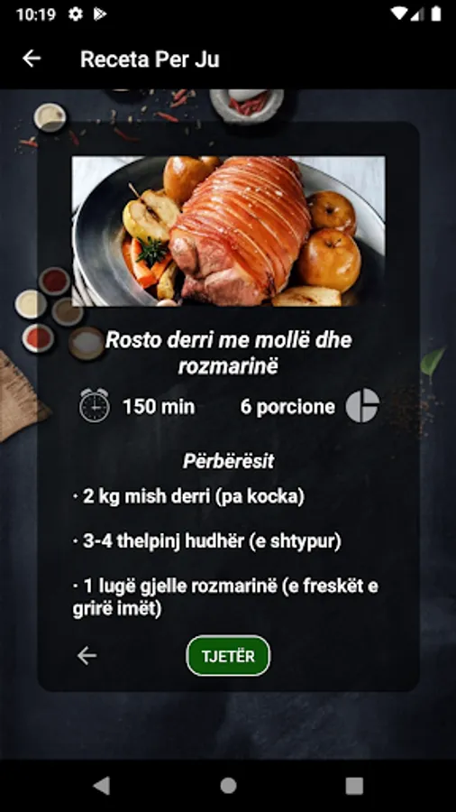 Ky app ju rekomandon receta gatimi në vakte të ndryshme të ditës ashtu si dhe receta ëmbëlsirash, brumërash dhe receta në ditët e festave.