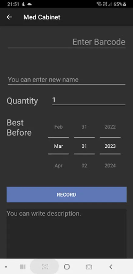 You can use camera to scan barcodes of the medicines for faster recording.