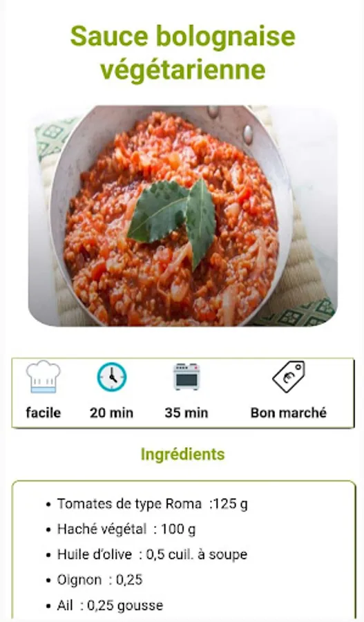 The best application for simple, fast, expensive vegetarian cooking ... in French
