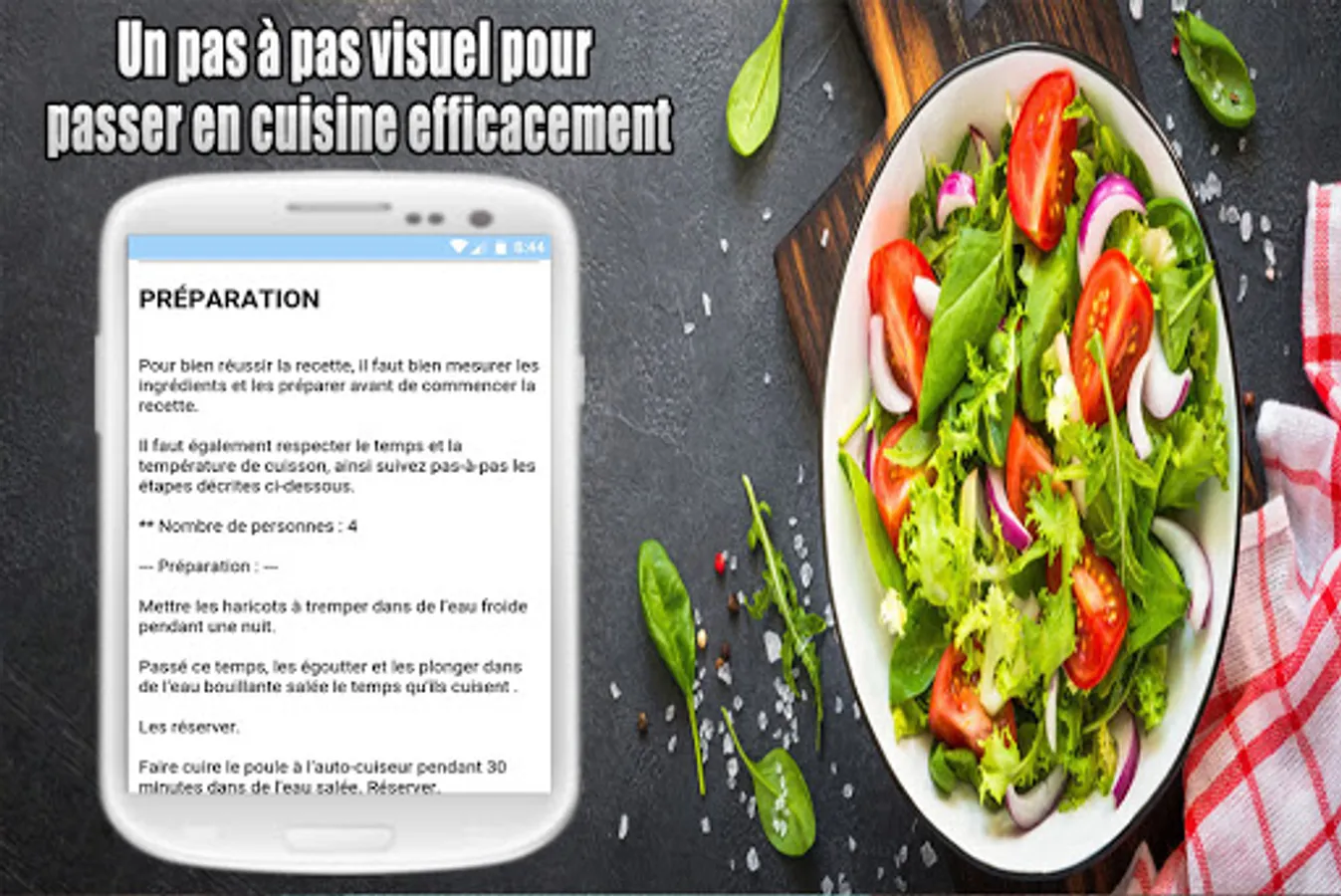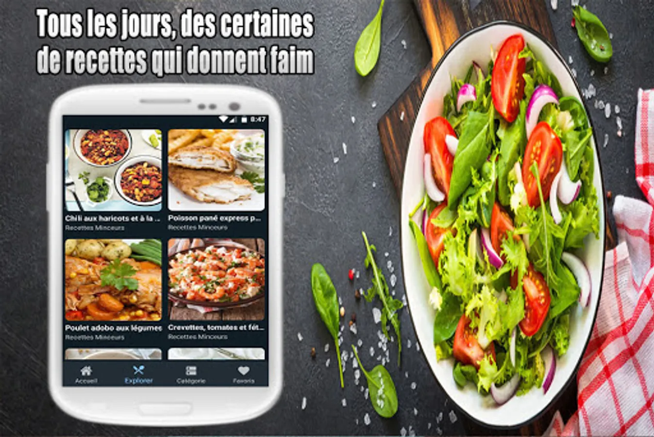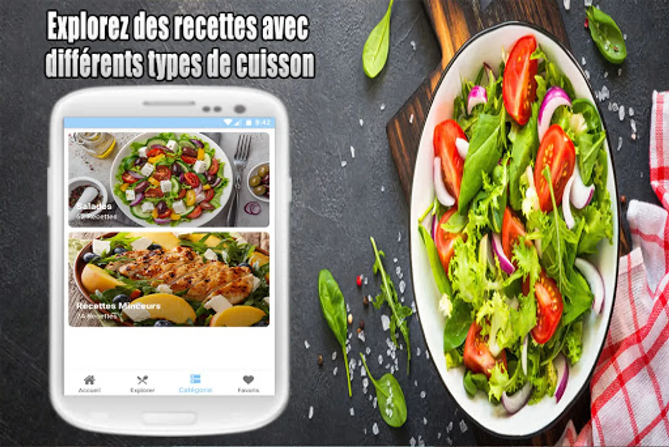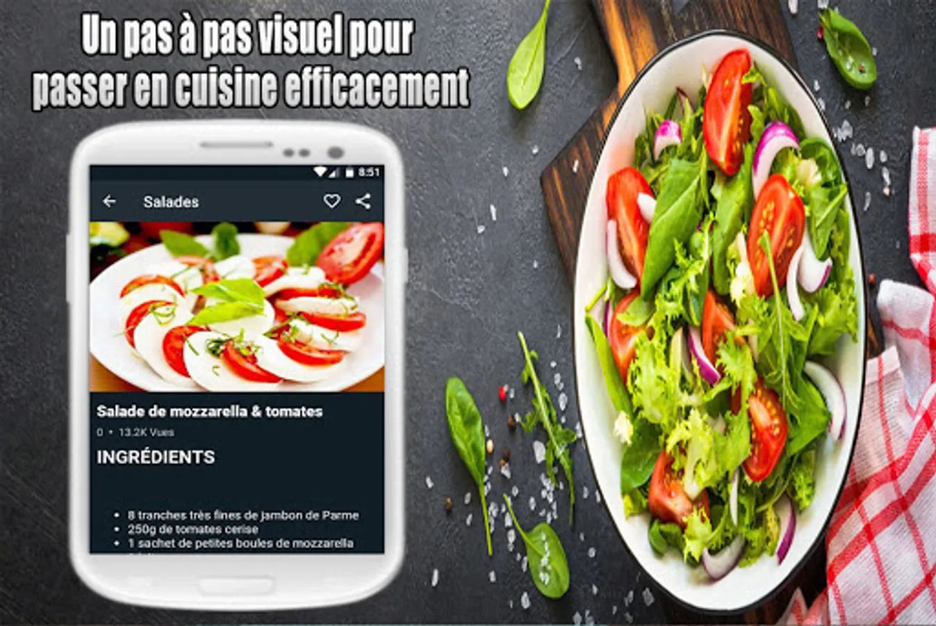 Salade verte ou composée, aux fruits, salade de riz ou salade de pâtes? Besoin d'idées pour une laitue, une scarole, une iceberg, du cresson, une roquette ou des épinards? Nous avons des recettes pour des salades de betteraves, pommes de terre, crevettes, et aussi du taboulé. Régalez vous avec une salade niçoise ou une salade grecque... tous dans notre Recettes Salades app.