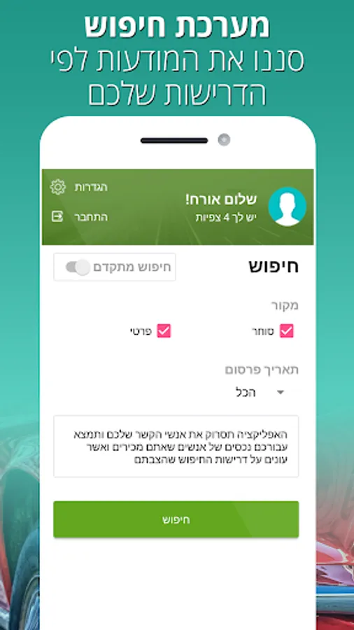 The application scans your contacts and, using advanced algorithms, it detects vehicles for sale that have been published by your contacts.