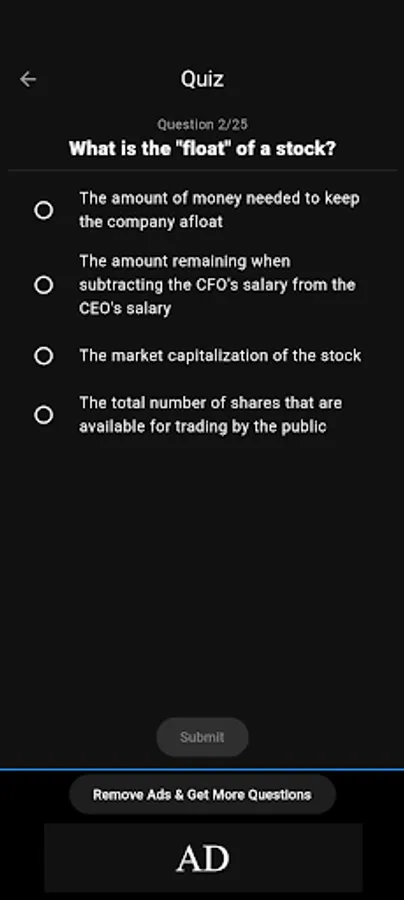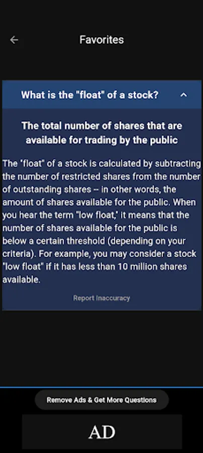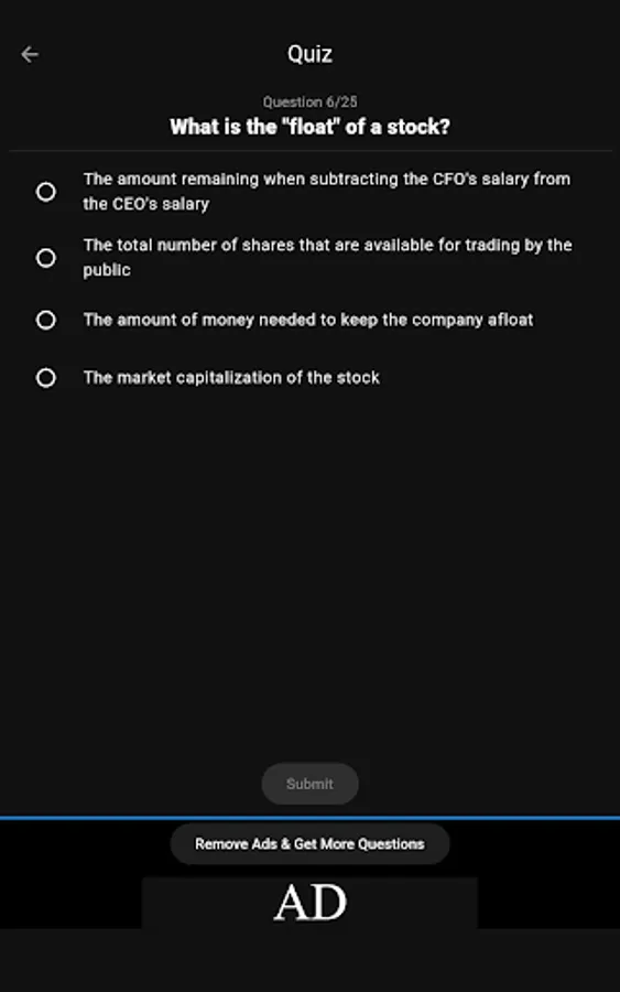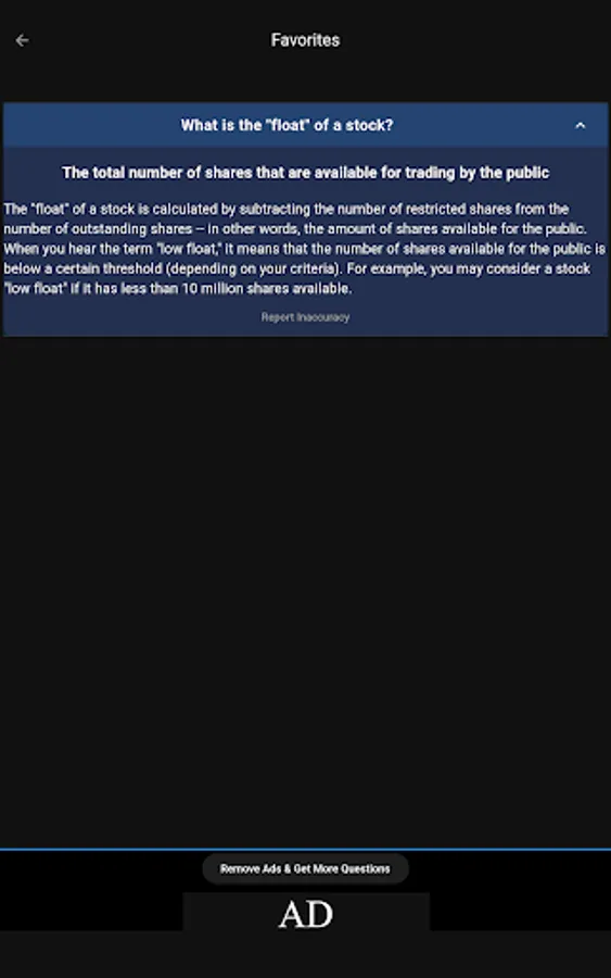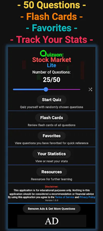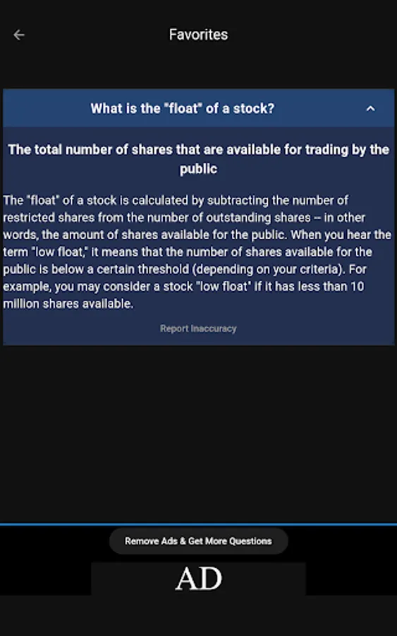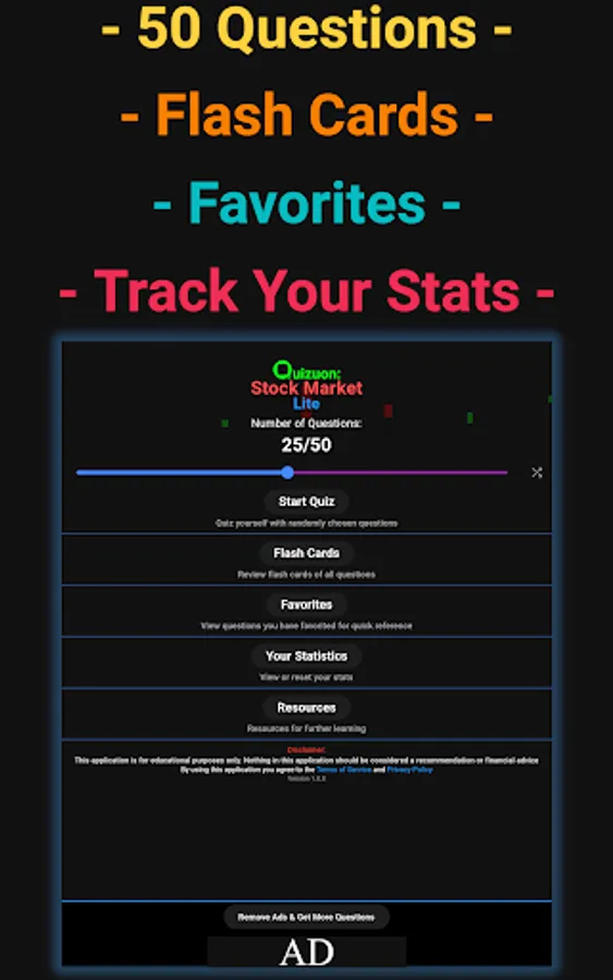 This Lite version of Quizuon: Stock Market contains advertisements and has only a portion of the questions.