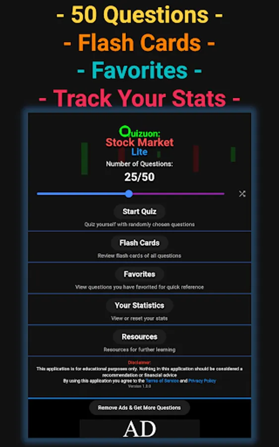 Whether you are a complete beginner or have some experience with the United States markets, Quizuon: Stock Market is designed to help enhance your knowledge and proficiency within them.