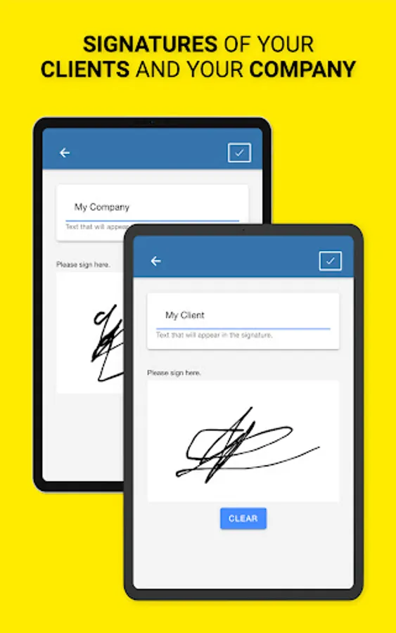 Add the signature of your company and your customers to the receipt, invoice, estimate and credit notes.