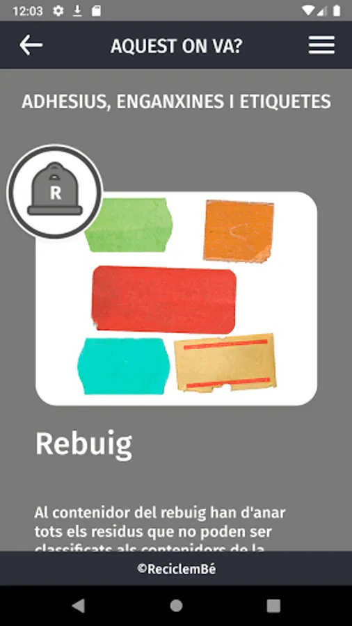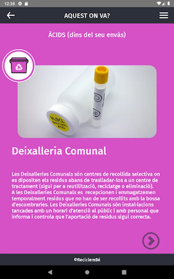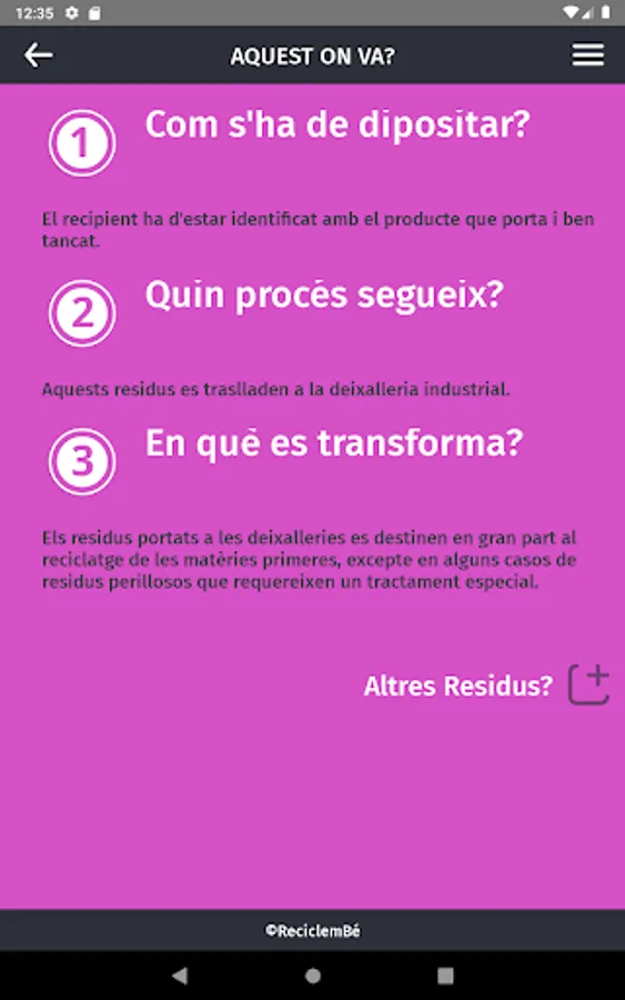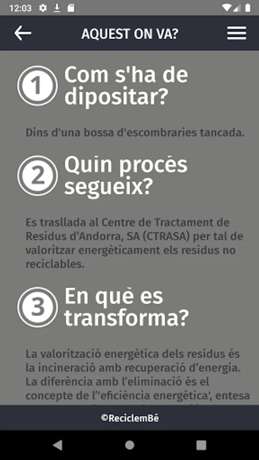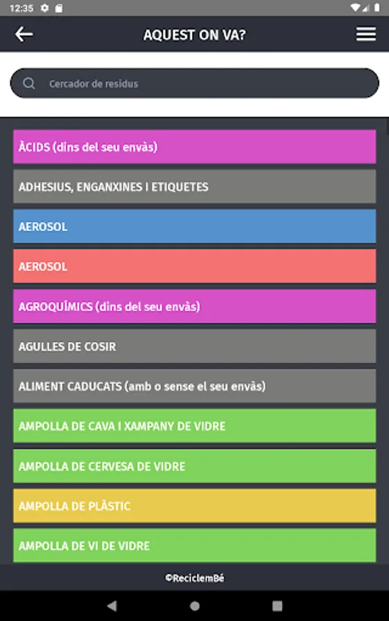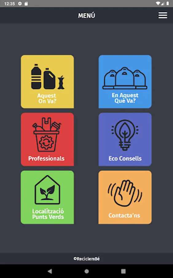 This application is part of the communication campaign on selective collection in Andorra "Reciclem Bé" to help citizens to recycle correctly at home. It is a campaign promoted by the seven communes of the Principality of Andorra, with the collaboration of Pirinenca de Serveis.