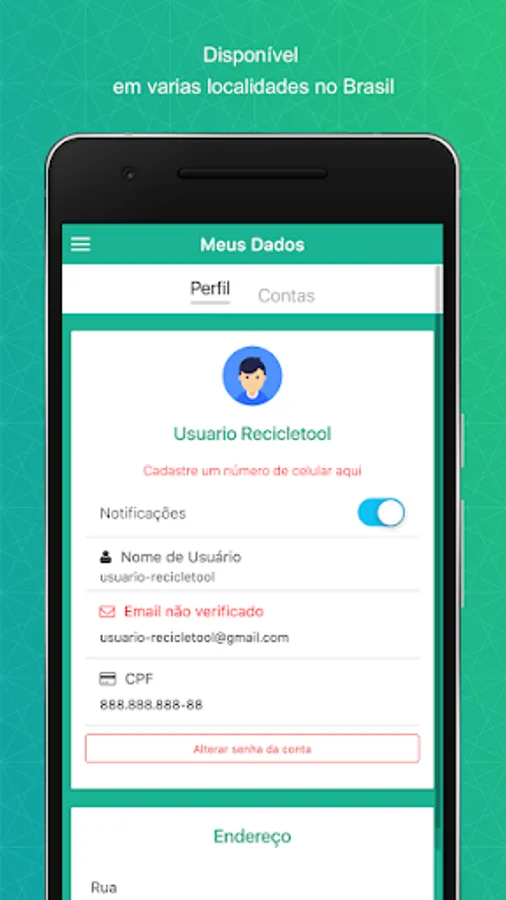 Using the application you will have access to functions such as recycling extract (which will list all your transactions and your recycling credit), location of Recycletool equipment in your city through map, button to update cadastral data and area for withdrawal of credits , with the option to convert your balance into benefits with our partners.