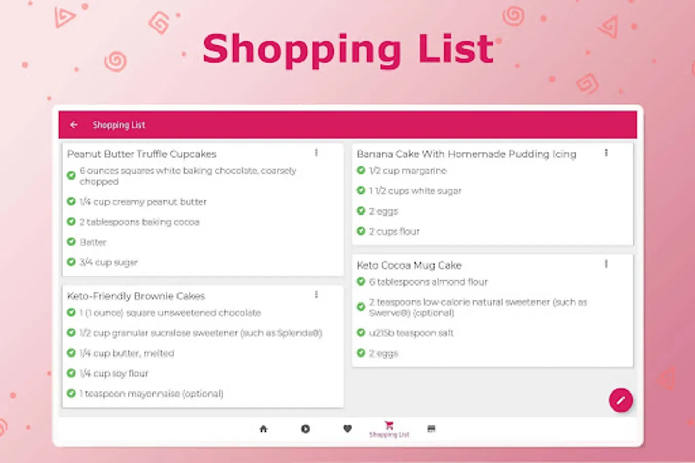 Cake recipes app let you collect all your favorite recipes and shopping list offline.