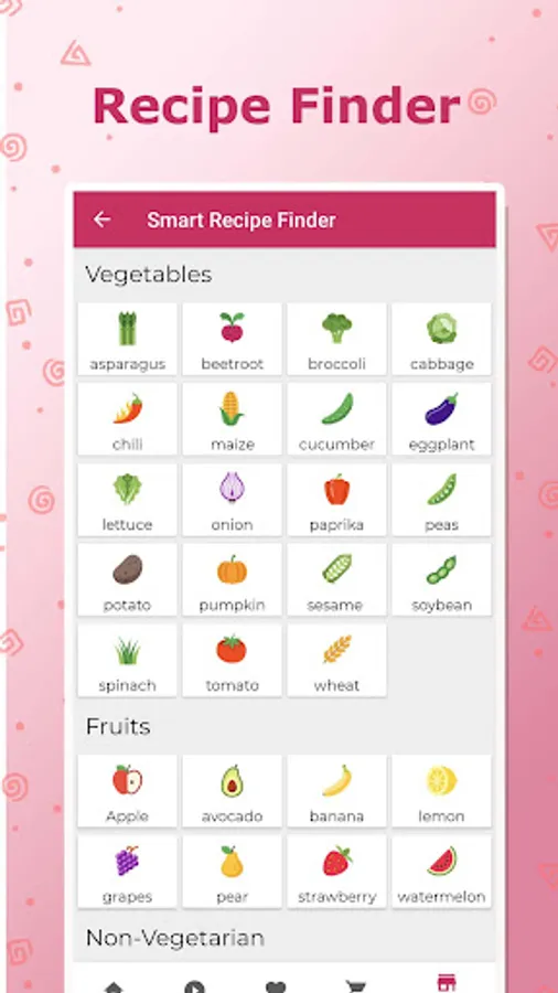 Make recipe-hunting faster by using the kitchen store feature! You can add up to five ingredients in the basket. Once you are done, hit "Find Recipes," and you will have tasty cakes in front of you!