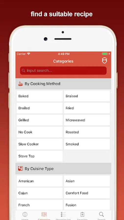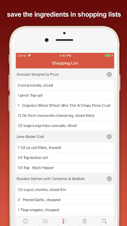 - Ingredients: preparing foods and seasons carefully and you can save the ingredients in shopping lists