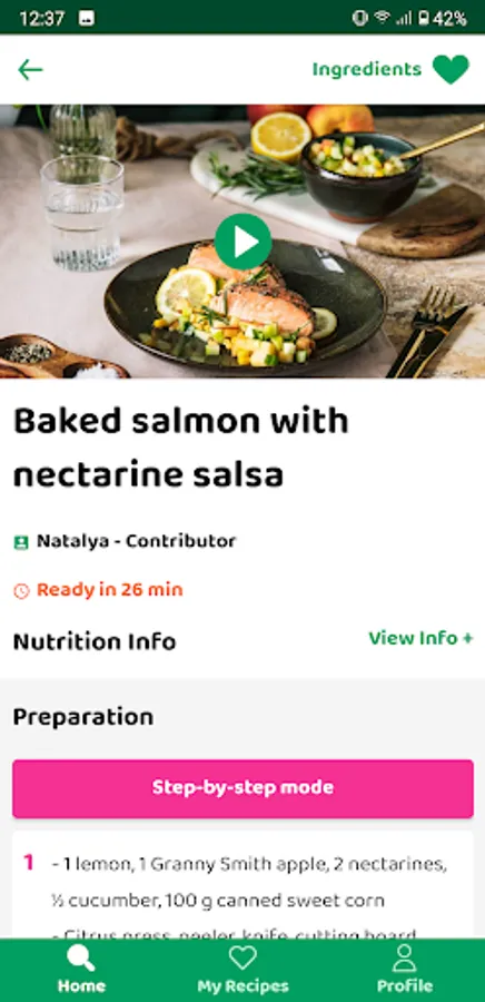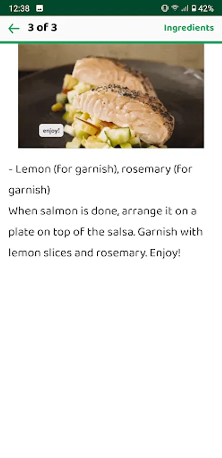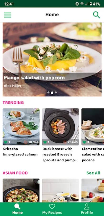 The app enables you to search for recipes by the name of a recipe or by ingredients used or do it easily by searching with the ingredients you have in your kitchen/refrigerator or meal ideas, cooking style, vegetarian...