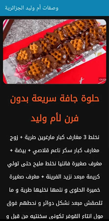 The application of Umm Walid recipes, an application for exclusive Umm Walid recipes, contains more than one hundred and twenty recipes that work without the Internet and a very small size
