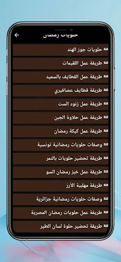 - Ramadan sweets. The application is updated periodically online.