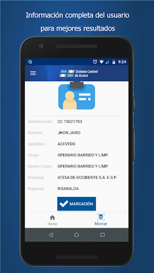SCA mobile is an application that allows you to register the start of work of your employees, by means of face recognition it indicates the moment and the position in which the employee will start or end his working day.
