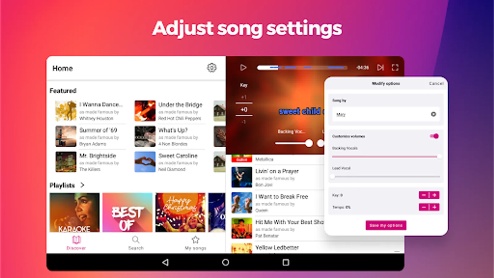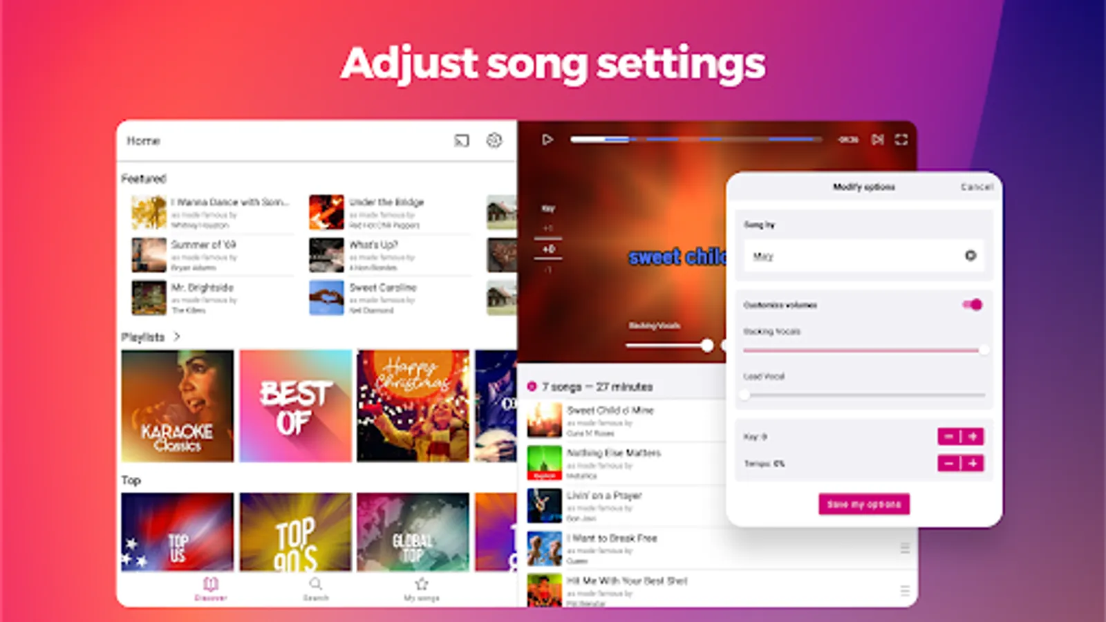 Unlock the full catalog of songs, and music quiz, sync your favorites for offline use, create custom playlists, and personalize your experience by adjusting vocal volumes, key, and tempo to suit your style.