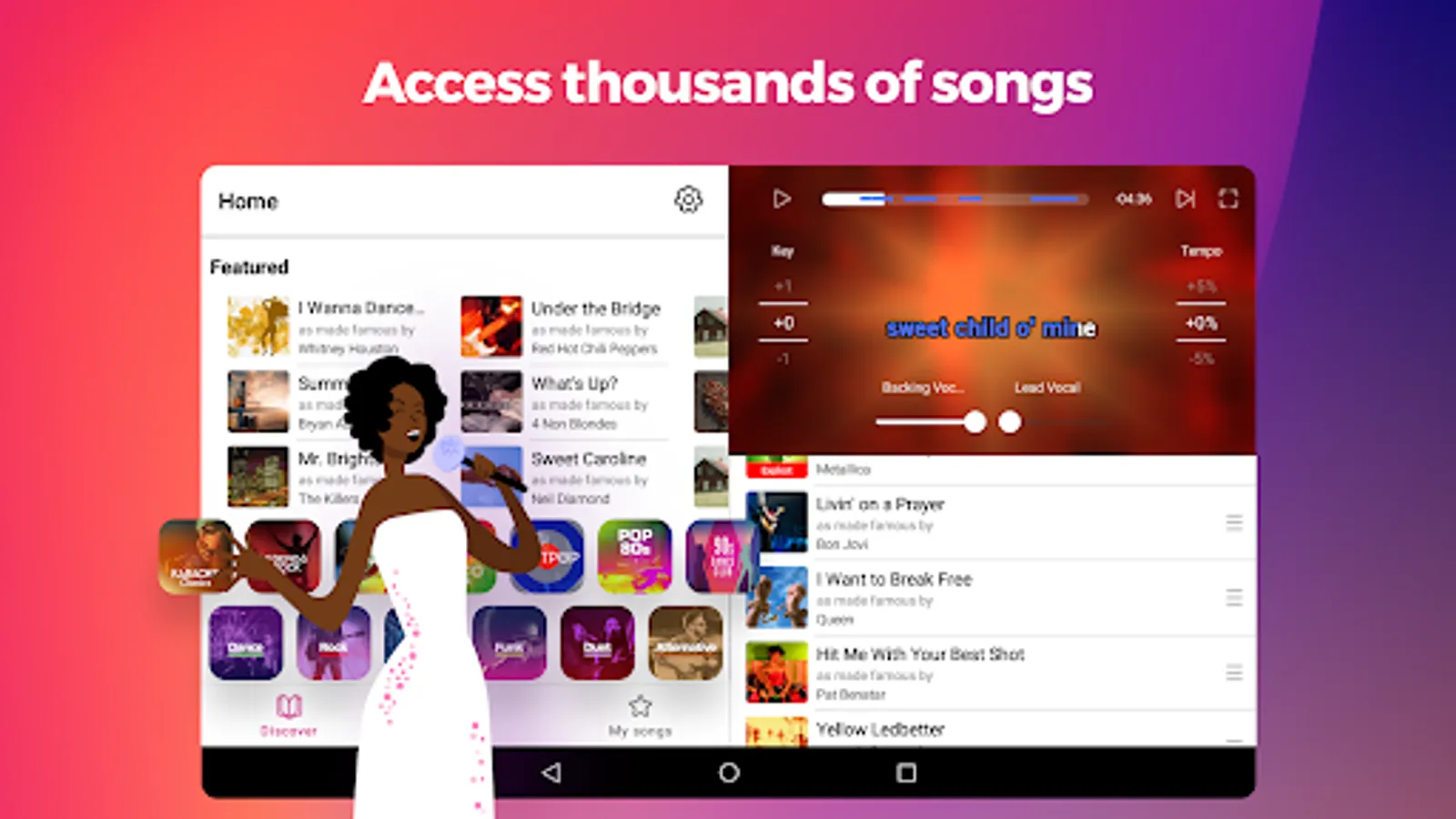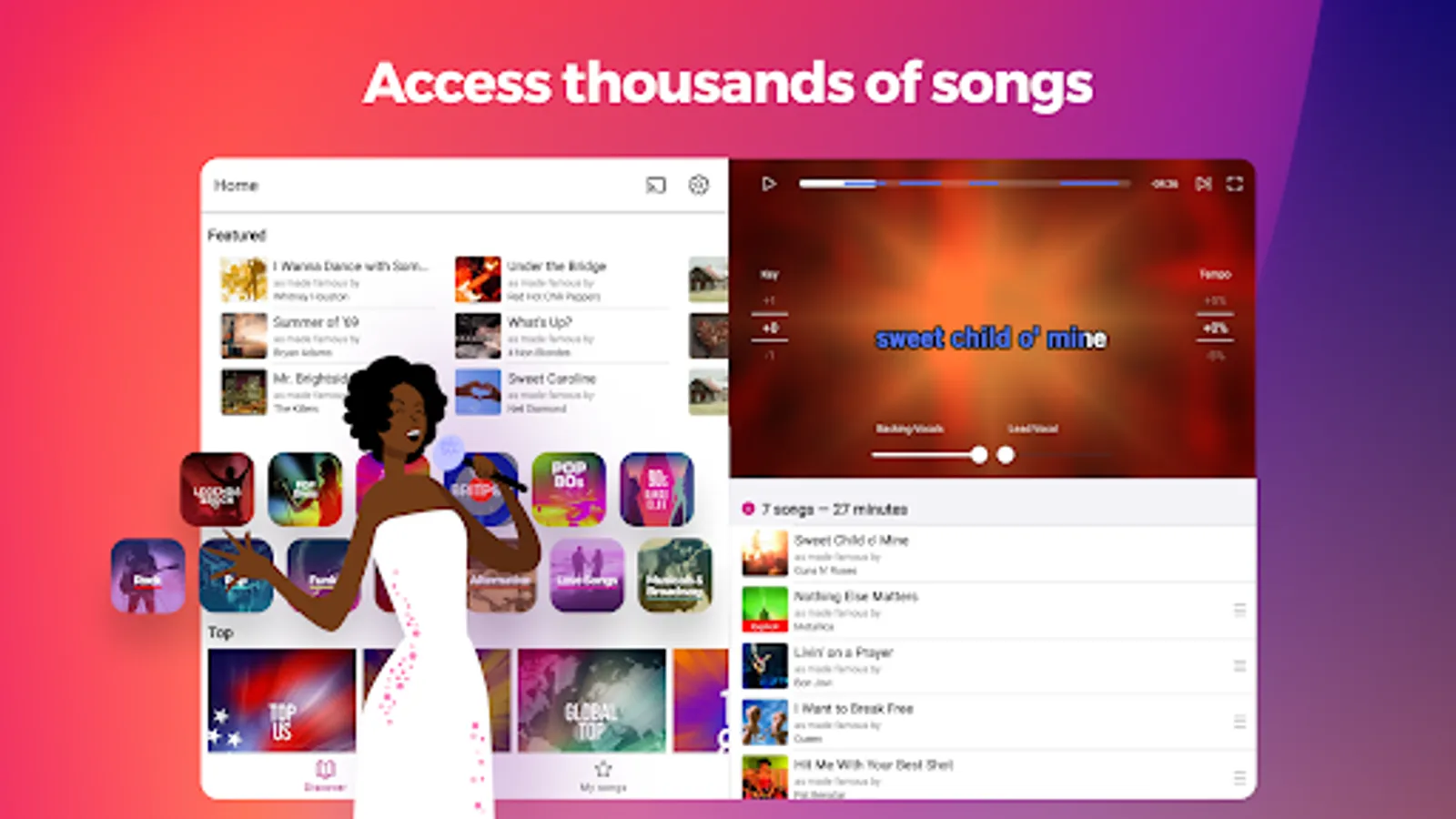 Experience the best in karaoke with uninterrupted, ad-free sessions, studio-quality sound, and access to a premium catalog of songs. Discover tracks shared by the community and even enjoy your favorite songs offline for the ultimate convenience.