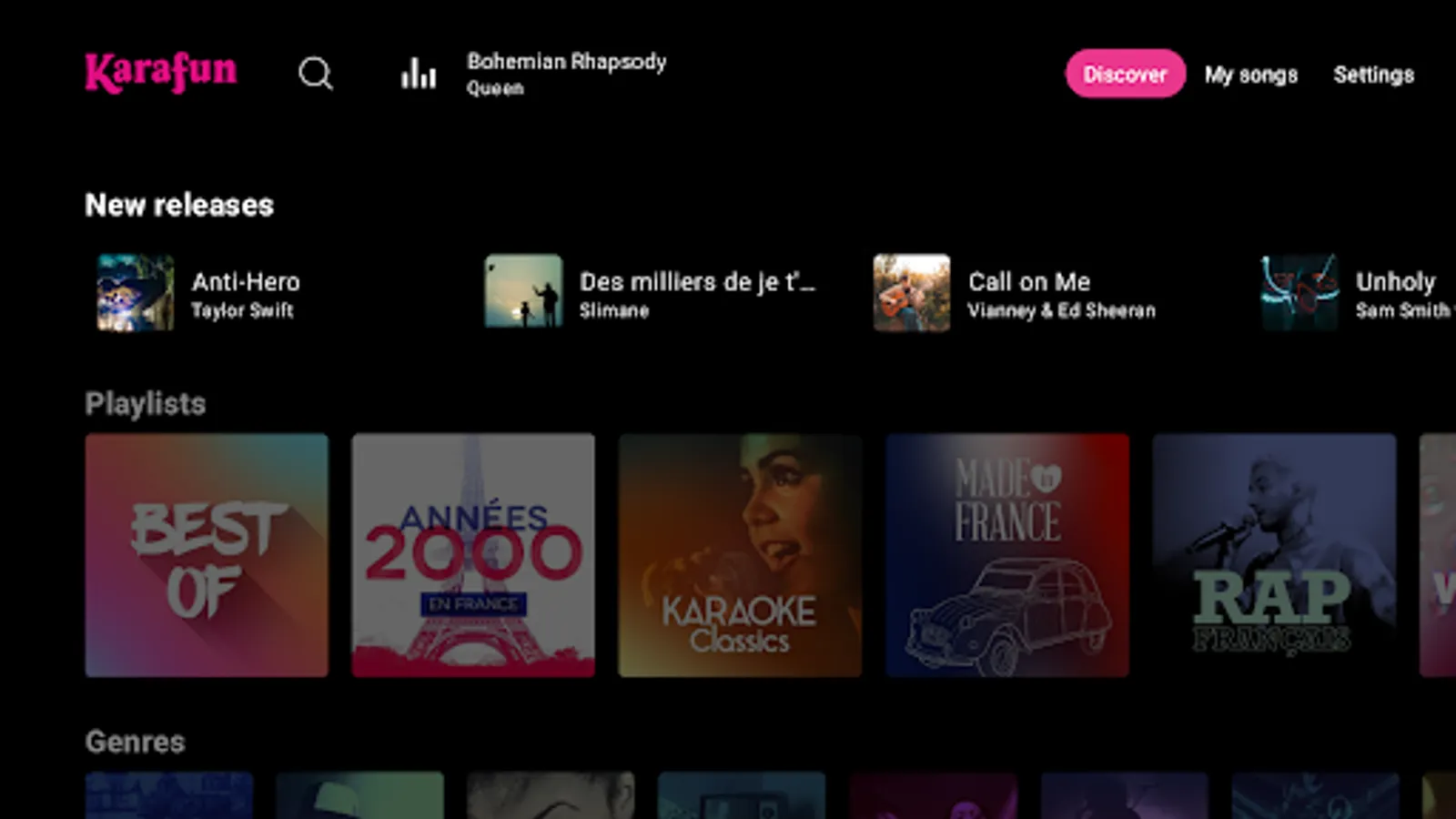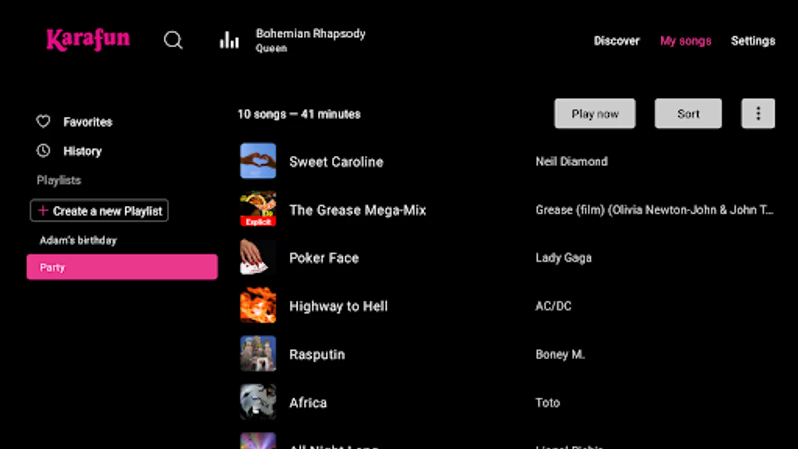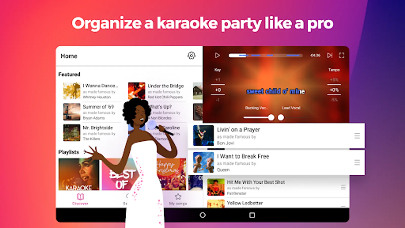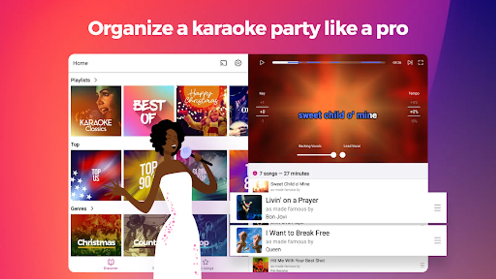 Organize your perfect karaoke session by creating custom playlists, adding songs to your favorites, and enjoying automatic catalog updates. Effortlessly managed the song queue to keep the party flowing smoothly.