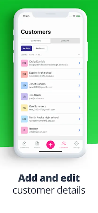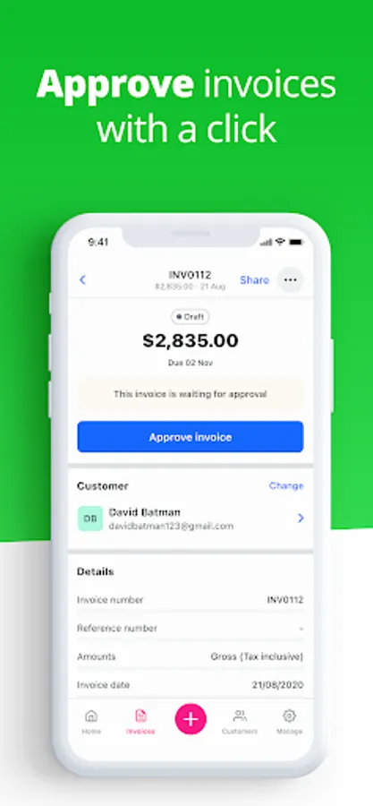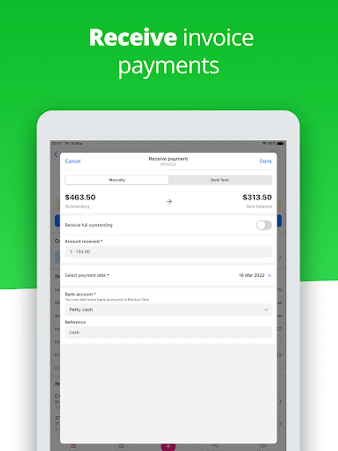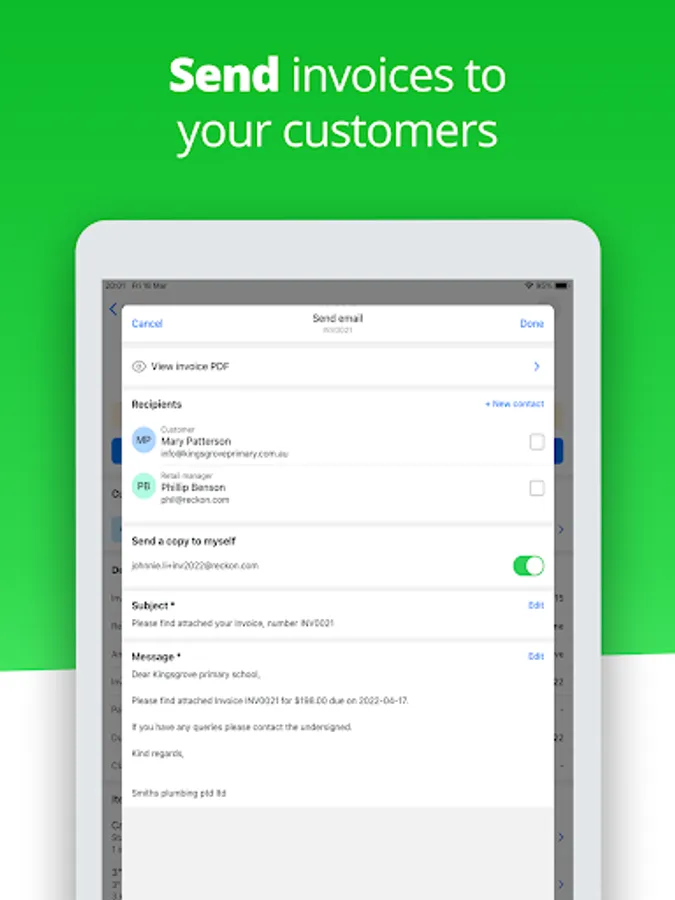 The Reckon Invoice app will work with all your Reckon One books with invoicing meaning you can switch between your accounts within the app if you have more than one company under your account.