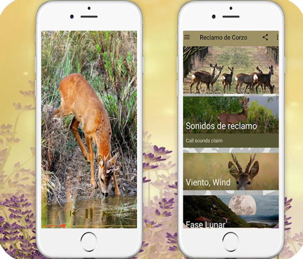 The sounds that are included in this roe deer claim app have a variable duration so that you can adjust it to your tastes, as well as use the repetition mode.