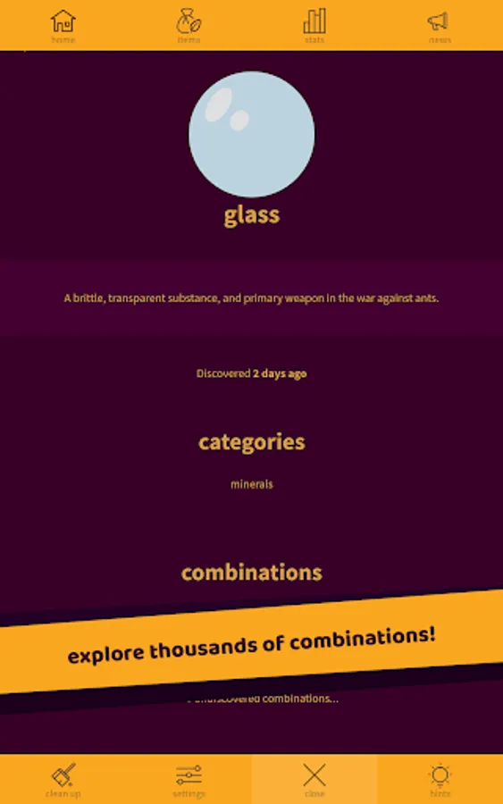 Mix items and create the world from scratch! Discover exciting items accompanied by funny descriptions and lose yourself exploring the huge, new library!