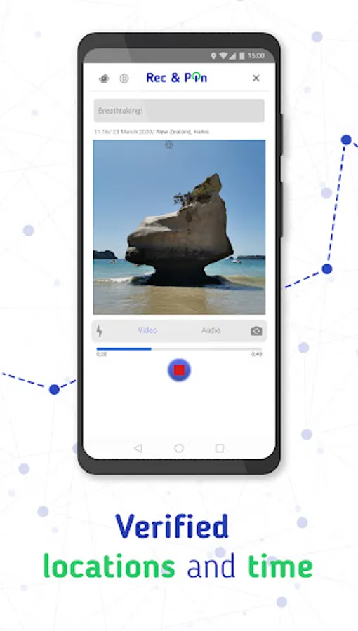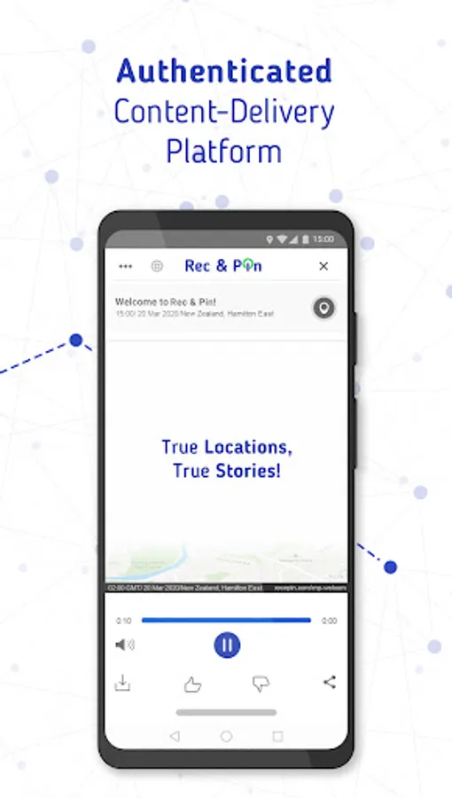 Rec & Pin (Rec n Pin) is a video, audio, and photo verification app that creates an integrated visual and aural experience that benefits users to enlighten a situation, educate people or boost synergy by recording genuine content. Users can only use the mobile app to record at a location and drop it as a pin only on that specific location. Rec & Pin certificates the recording with a digital watermark containing a unique identifier embedded named RNP-Code. Others can check that specific code and find out whether a given file is authentic through Rec & Pin website (www.recnpin.com/rnp-code).