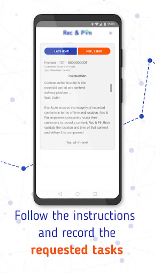 Rec & Pin Console is an authenticated content delivery platform. This platform lets their users to send a task to their customers/employees to record content through Rec & Pin mobile app. Rec & Pin then verify the location and time of all contents and deliver it to the business! Isn't it cool?