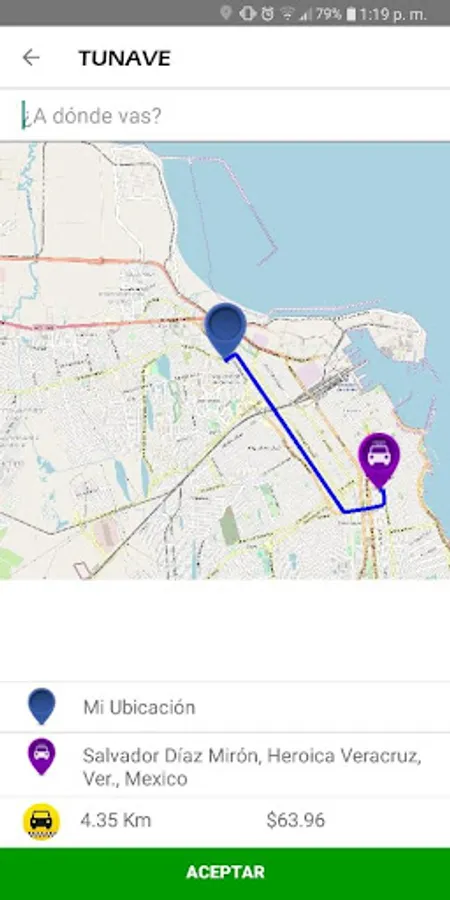 Application that allows users of the private transport service, request a service with a single click from the location where they are.