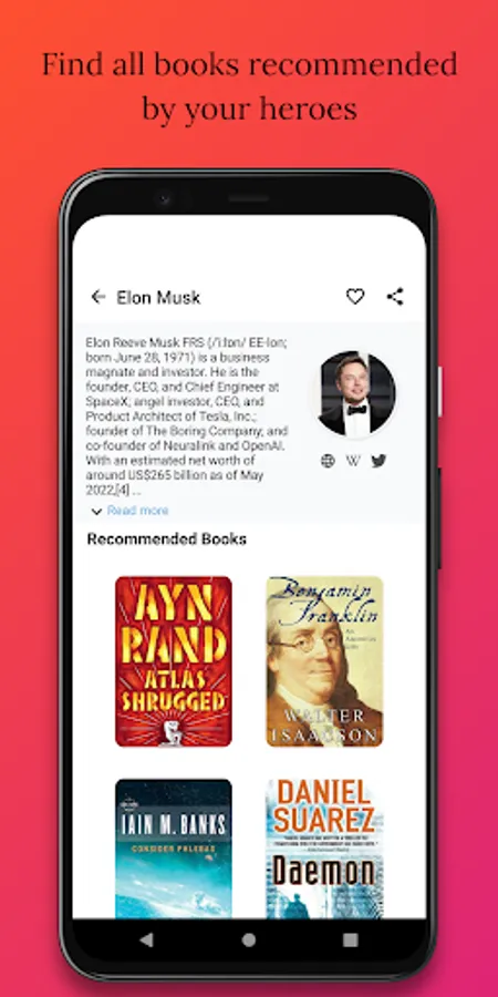 ● Get book recommendations & book reviews from Elon Musk, find other book recommenders