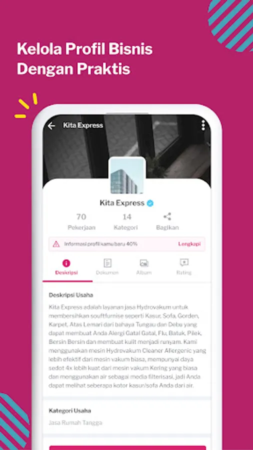 Through Sejasa, service provider partners can manage accounts to make it easier to get a job: