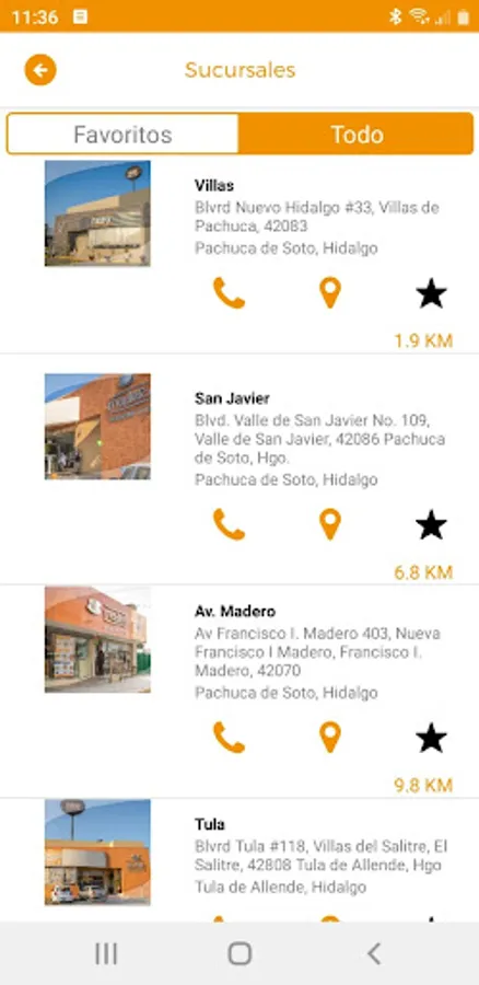 • Branches: You can see the address, hours and telephone numbers of your favorite restaurants and reach them through GPS