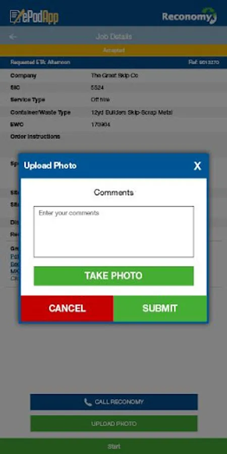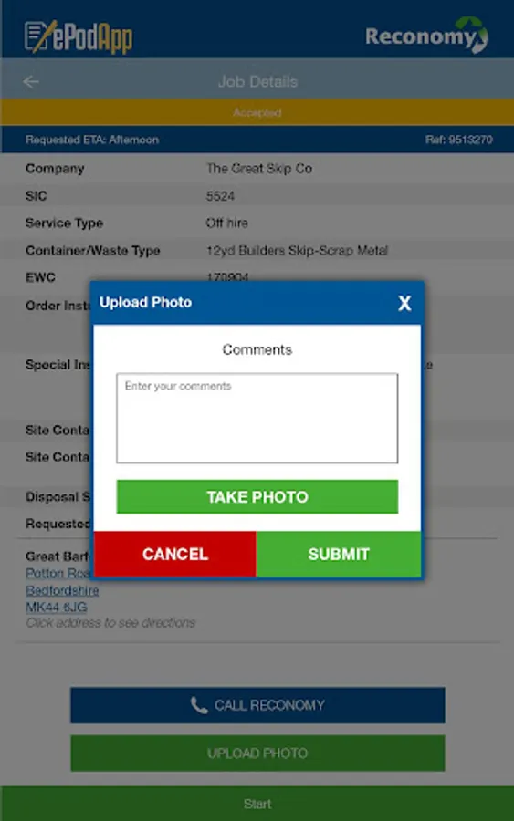 The app allows drivers to add specific details and photos relating to individual jobs, helping to streamline future collections and deliveries. Reconomy can then follow-up any flagged issues with the client, such as access problems or obstructions.