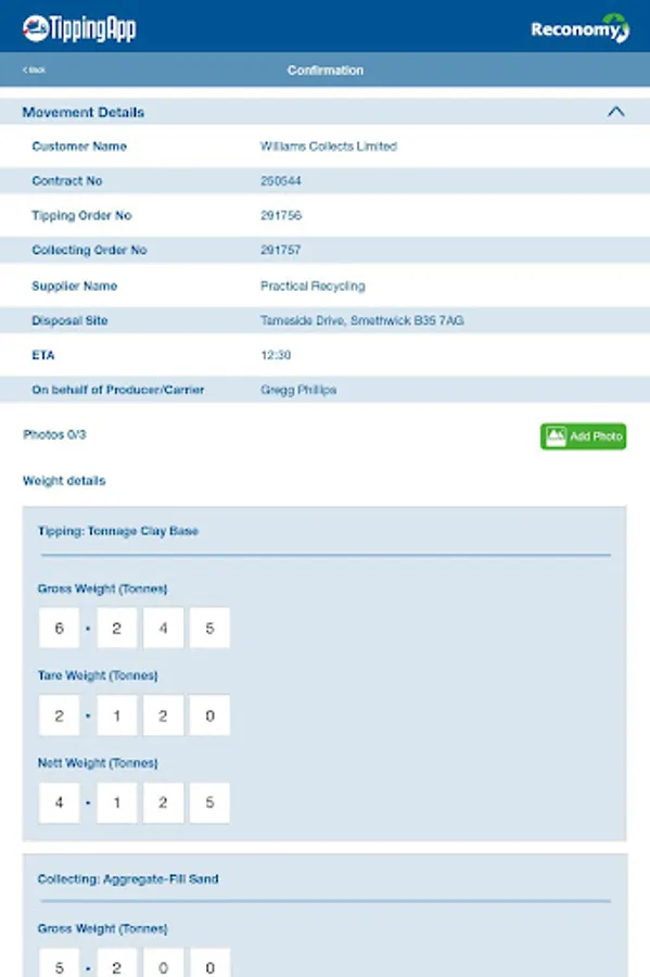 All your tipping and collection tonnages are directly inputted into the App at the point of weighing, giving immediate access to important data. This is supplied together with confirmation signatures from both the driver and weighbridge operator.