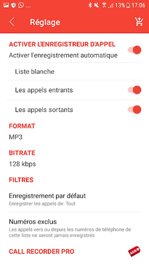 Please note that call recording does not work on some devices and the quality of the recording may be poor. We therefore suggest that you try the free version before buying the paid application.