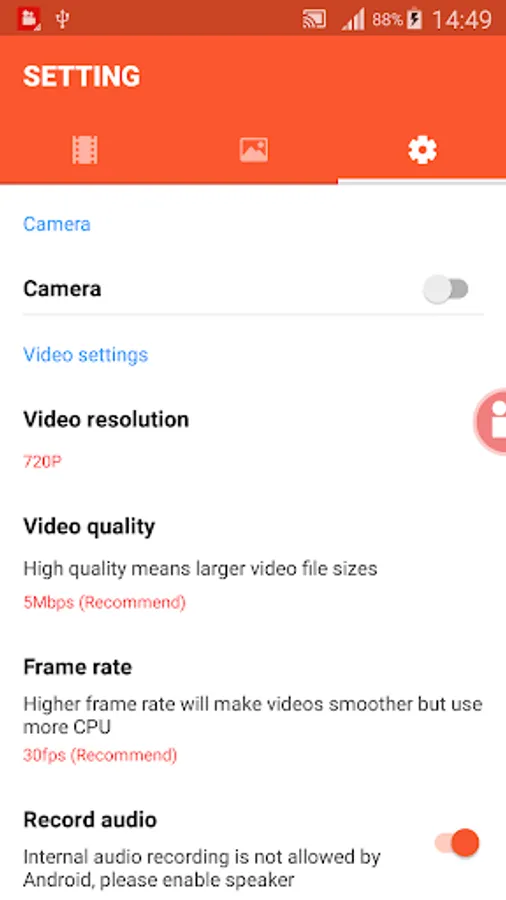 ★ Recording of Mobile screen can be done with front camera feature which allows you to capture your expression for a perfect tutorial.