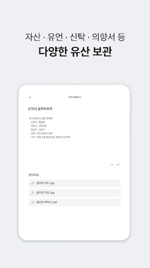 In preparation for unexpected accidents, it is a service that conveniently records and stores heritage on a daily basis and delivers the stored heritage to a specific person in the event of an accident to the user.