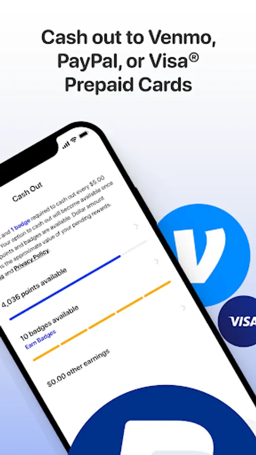 7. Cash out via PayPal, Venmo, or Visa® Prepaid Cards when you combine points and badges