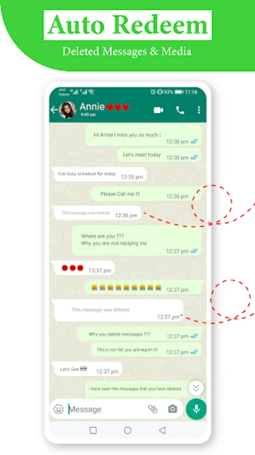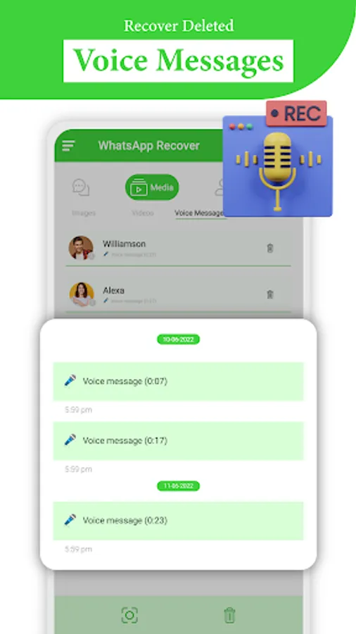 Recover deleted Messages recovery app helps you to recover deleted WA messages. Deleted Messages Recovery is a helpful tool that lets you recover text messages and any other media attachments (Pictures, Videos, Voice notes, audio, animated gifs, and stickers) all in one app! You can even download WA status too!