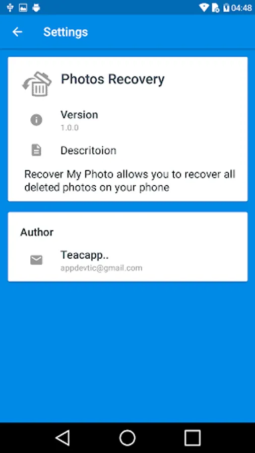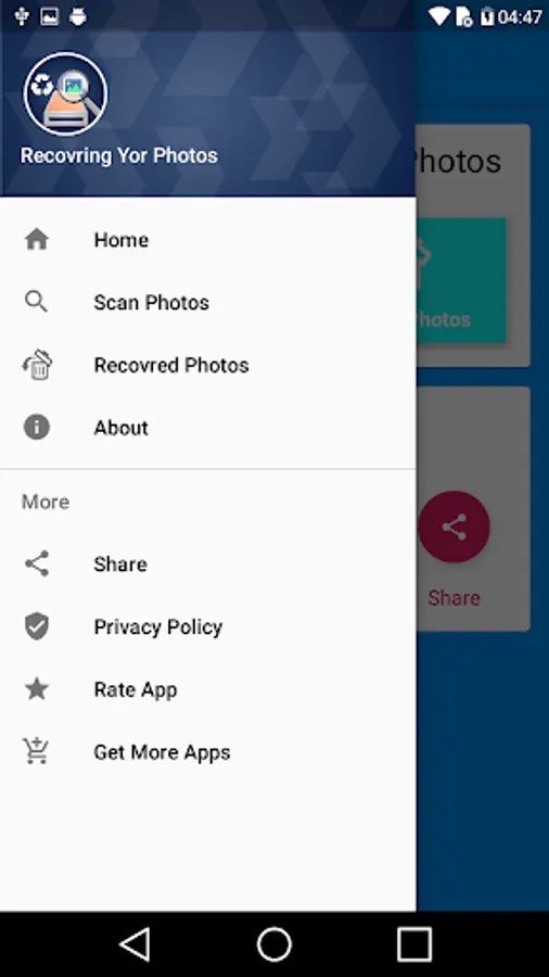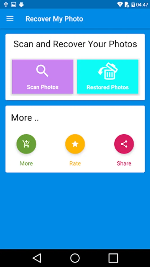 This app Recover My Photo is different from other photo recovery Apps, and offers users a much more simple and easier interface. With several clicks, you can perform the whole recovery on your own. The whole recovery process is 100% safe and fastest way to recover photos from your mobile internal memory and SD card like External memory.