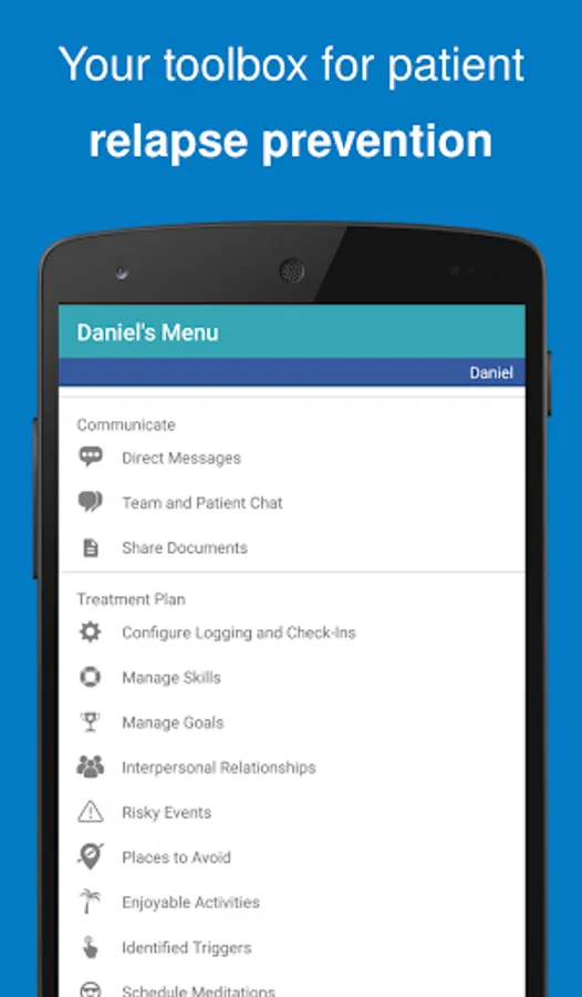 - Automate delivery of evidence based treatment tasks that integrate cognitive behavioral therapy, motivational interviewing, and community reinforcement approaches