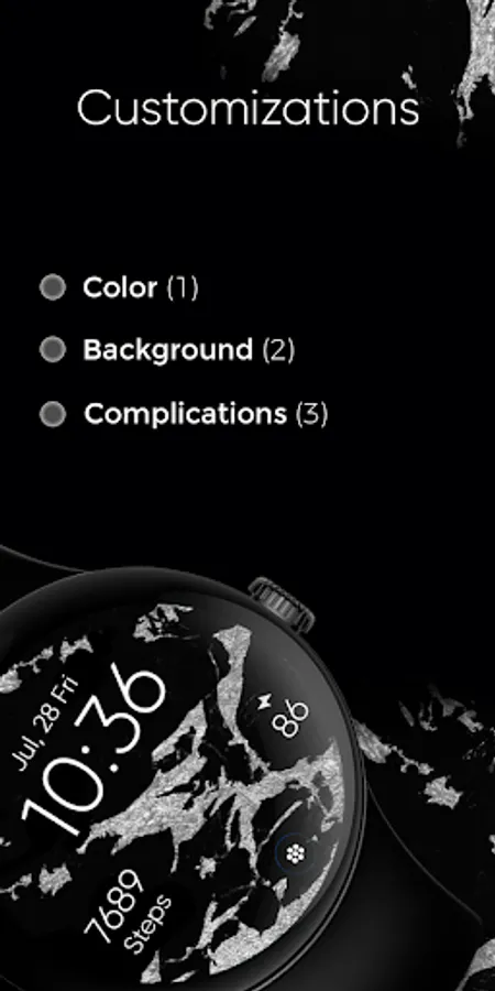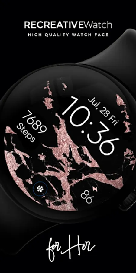 Customizable Wear Os Watch Face - Feminine and Elegant look. Perfect for Ladies! Silver, Gold & Rose Gold Effects!