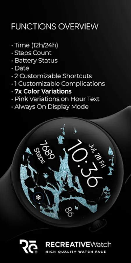 This watch face supports all Wear OS devices with API Level 28+ like Samsung Galaxy Watch 4, Galaxy Watch 5, Pixel Watch etc.