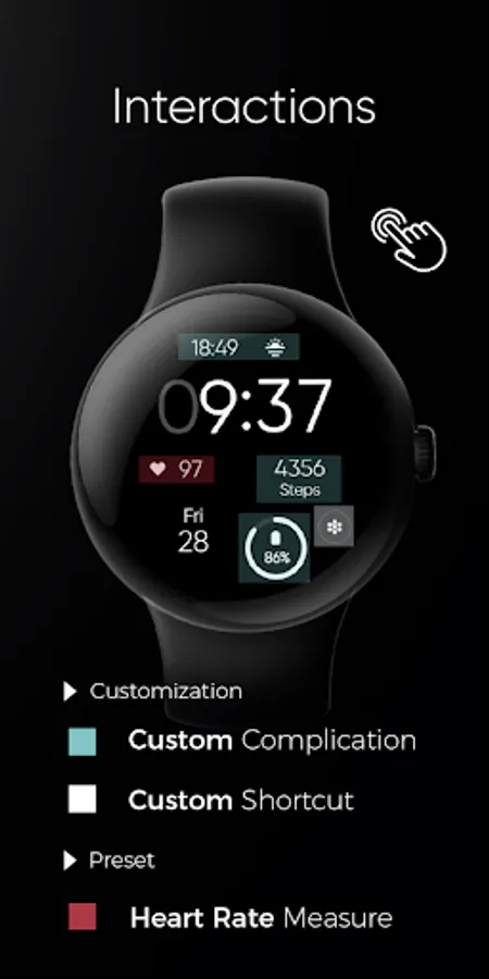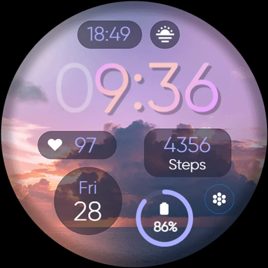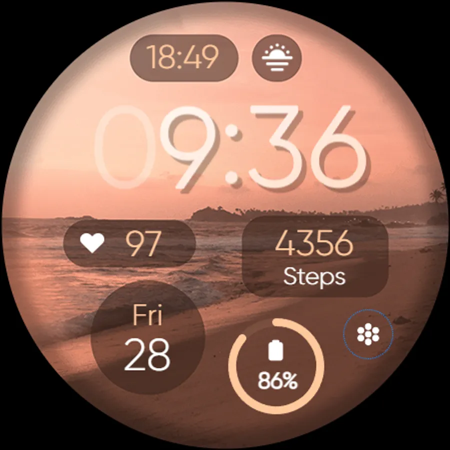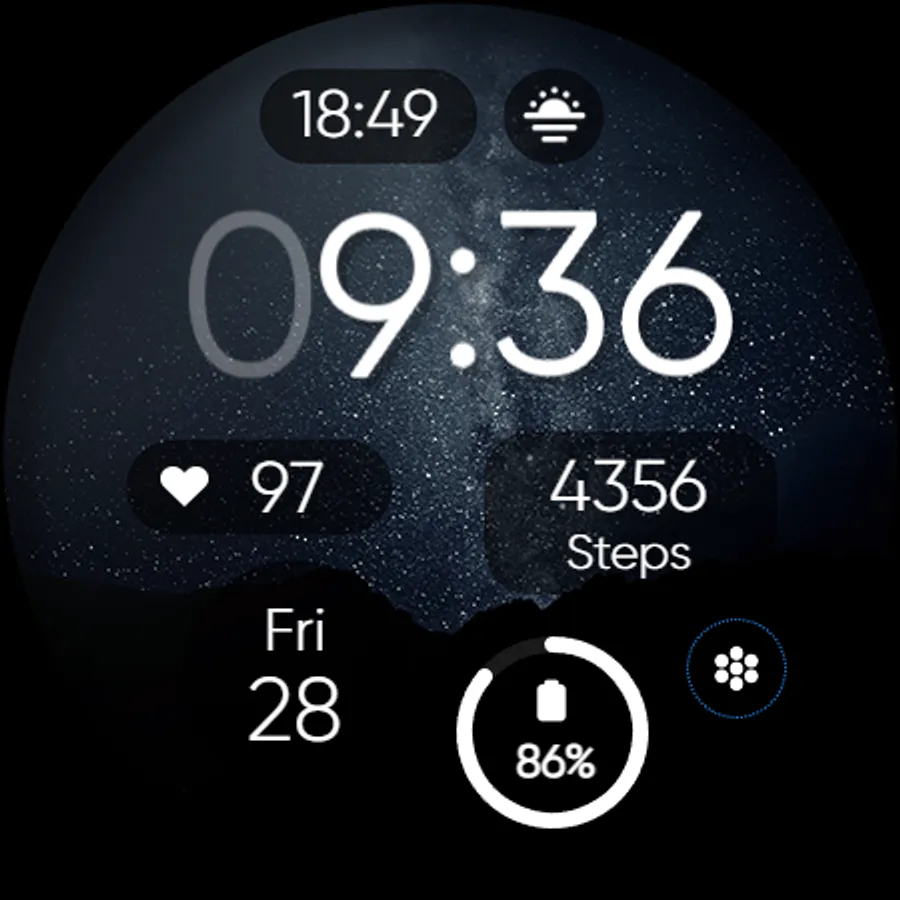 This watch face supports all Wear OS devices with API Level 28+ like Samsung Galaxy Watch 4, Galaxy Watch 5, Pixel Watch etc.