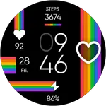 The 'Pride' watch face for Wear OS celebrates diversity and inclusivity with its vibrant design featuring a collection of pride flags. Each flag represents a unique identity, symbolizing unity and acceptance within the LGBTQ+ community. With its colorful display and meaningful symbols, this watch face serves as a visual reminder of love, equality, and pride.