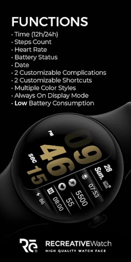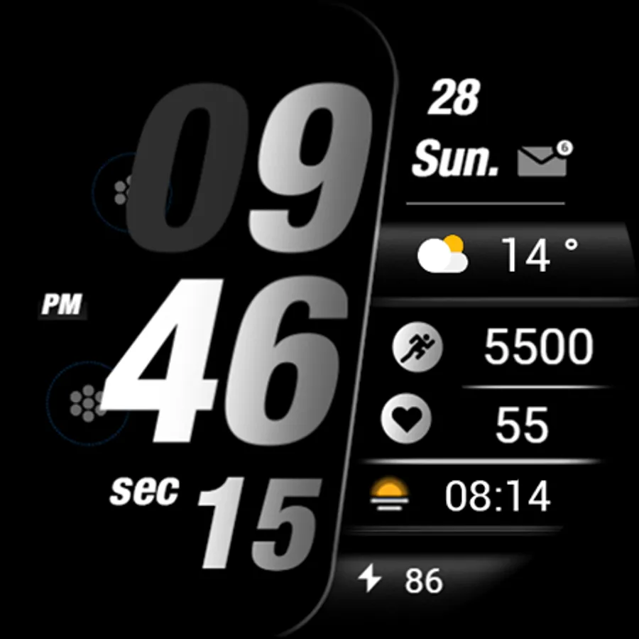 This watch face supports all Wear OS devices with API Level 28+ like Samsung Galaxy Watch 4, Galaxy Watch 5, Pixel Watch etc.