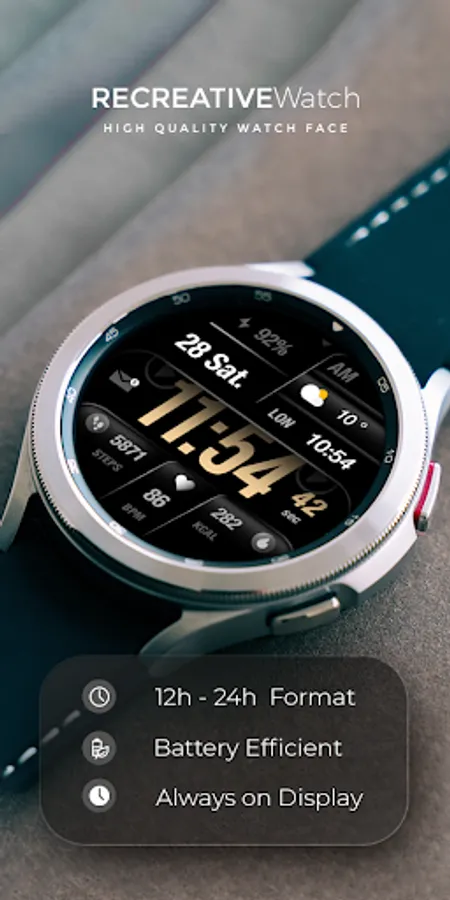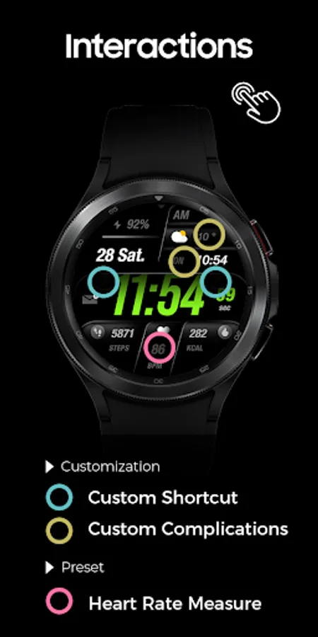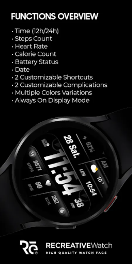 This watch face supports all Wear OS devices with API Level 28+ like Samsung Galaxy Watch 4, Galaxy Watch 5, Pixel Watch etc.
