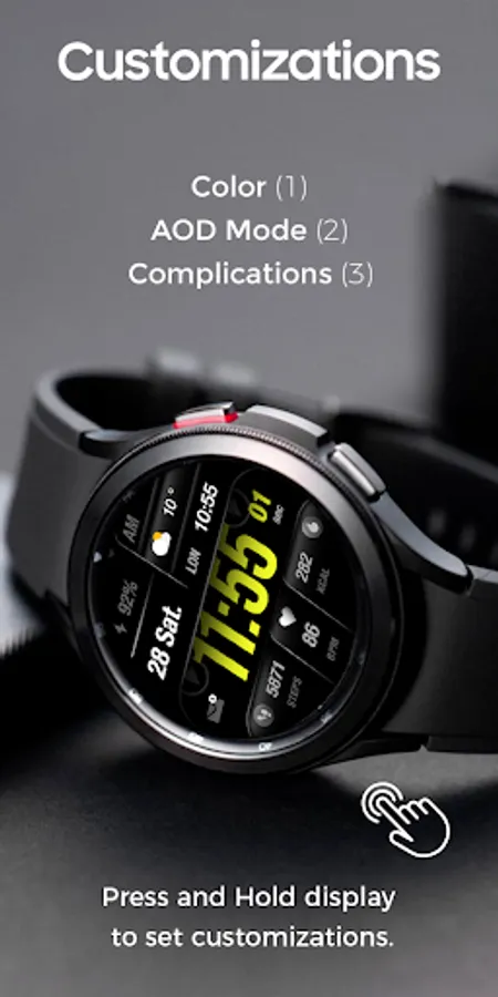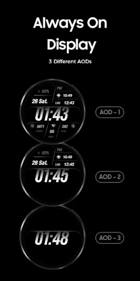 - 3 - Always ON Display supported with changeable colors and changeable modes.