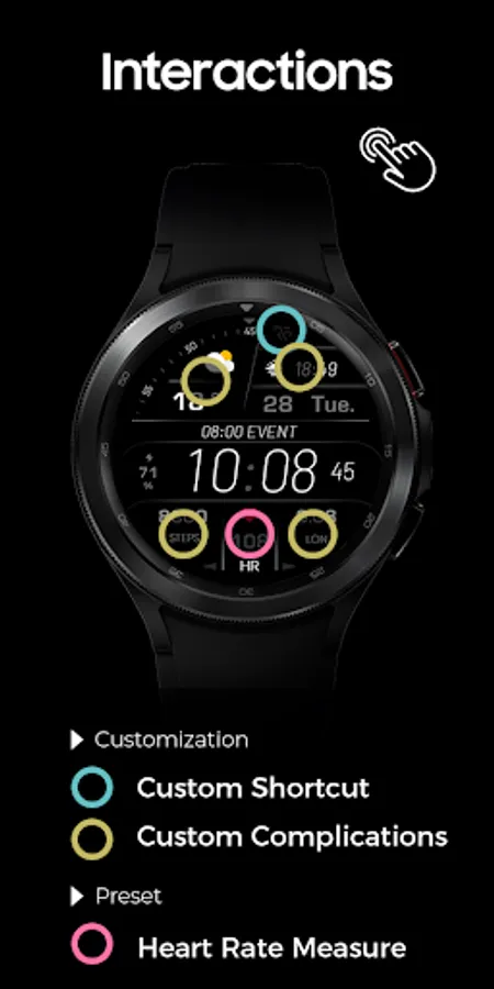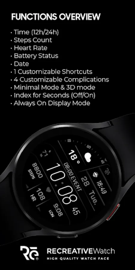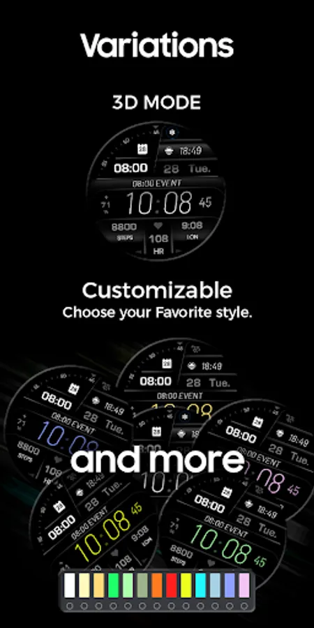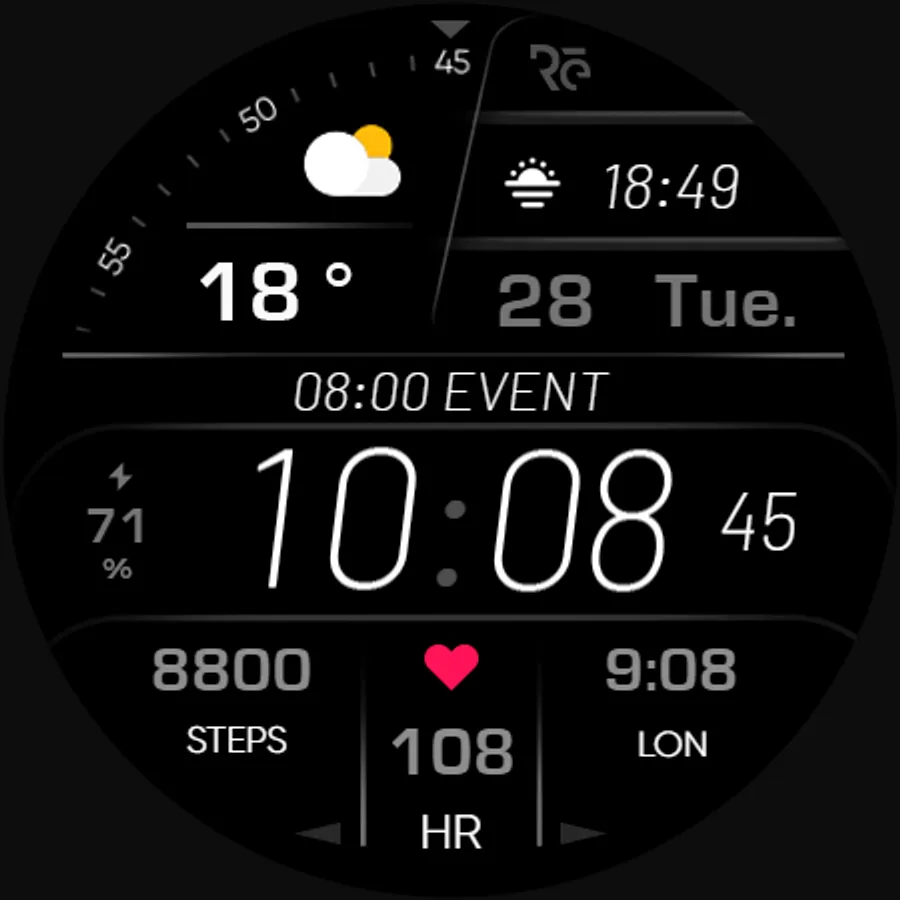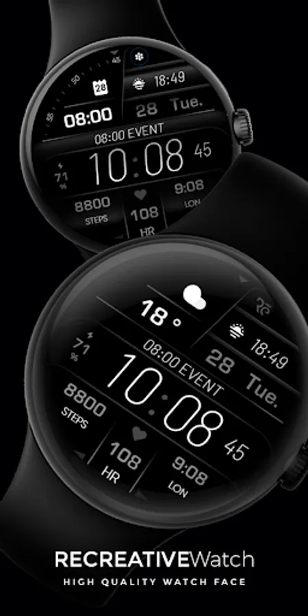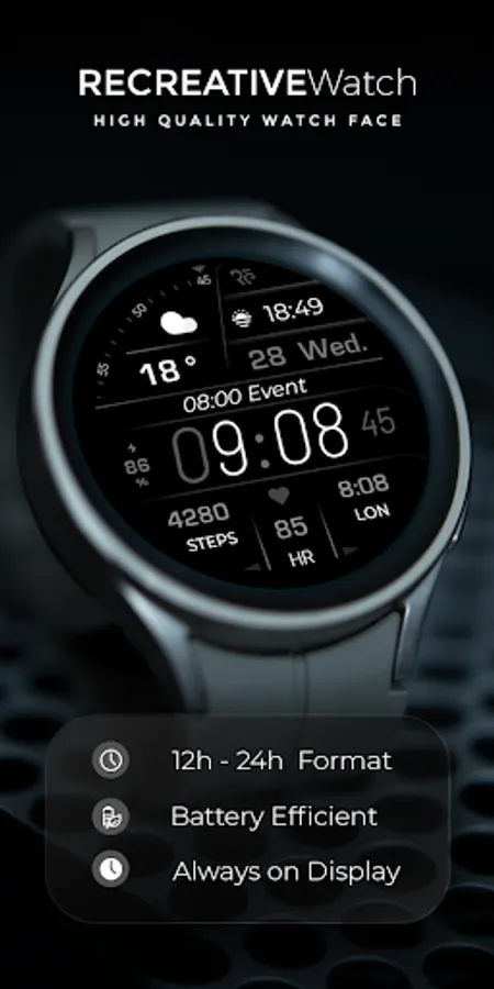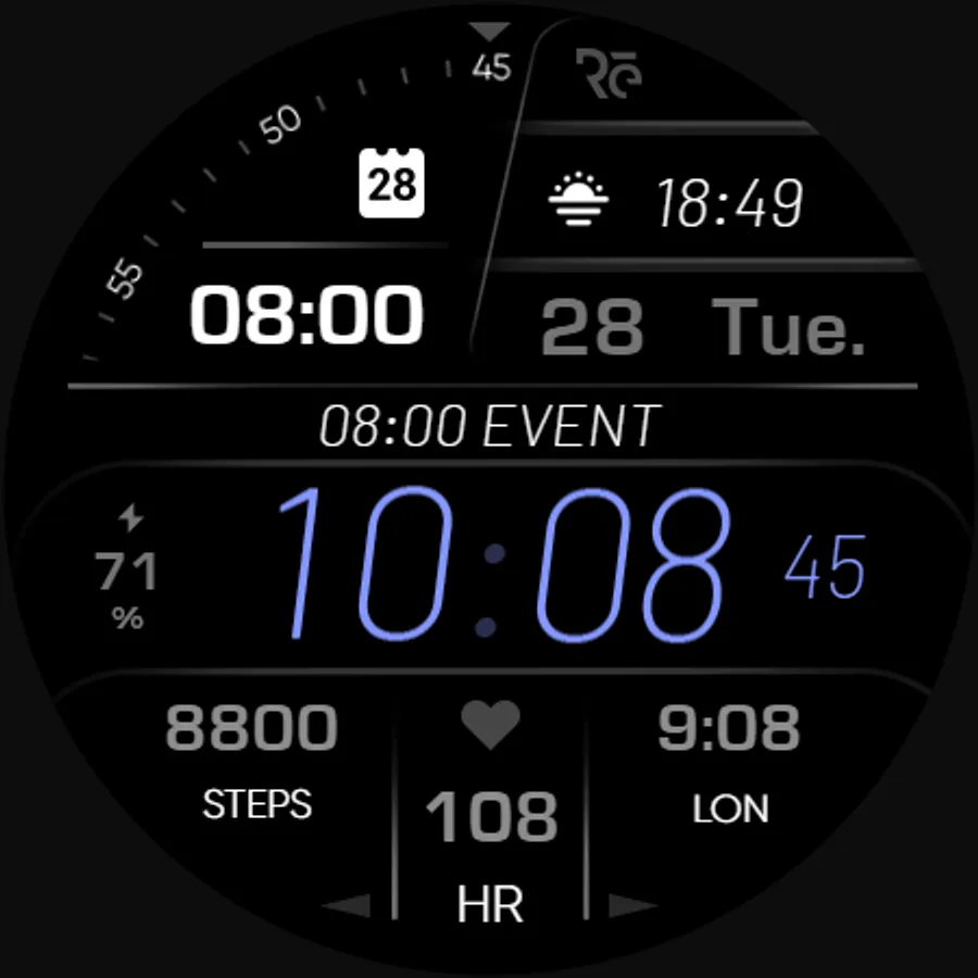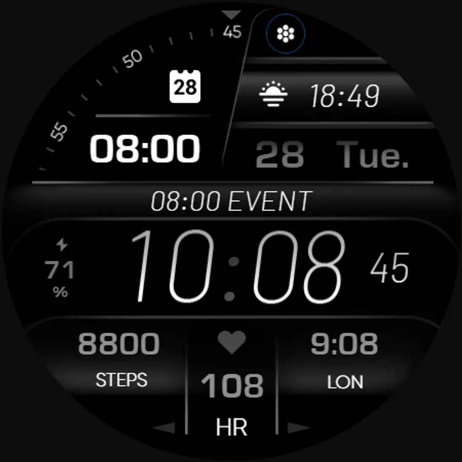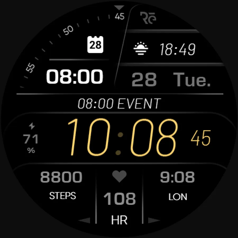 This watch face supports all Wear OS devices with API Level 28+ like Samsung Galaxy Watch 4, Galaxy Watch 5, Pixel Watch etc.