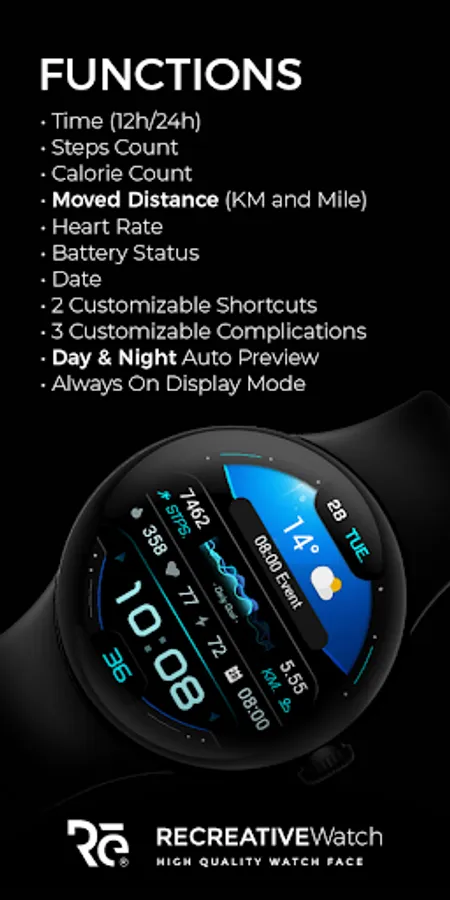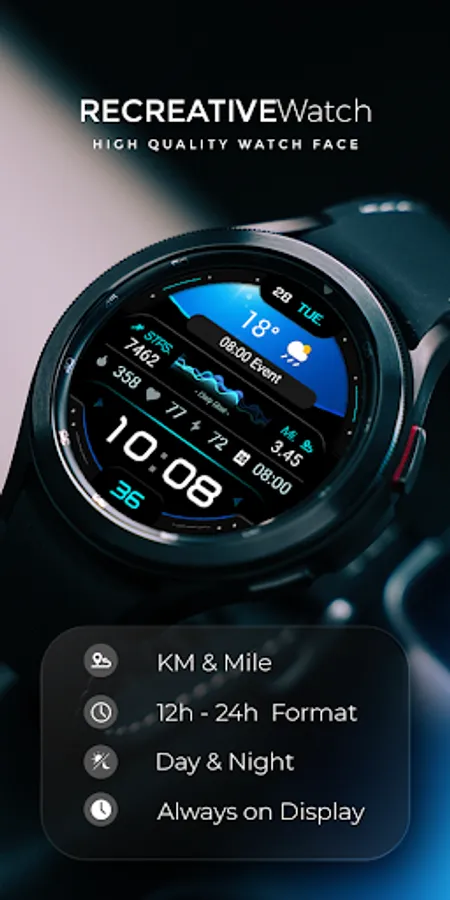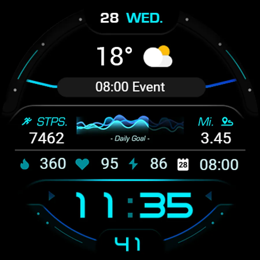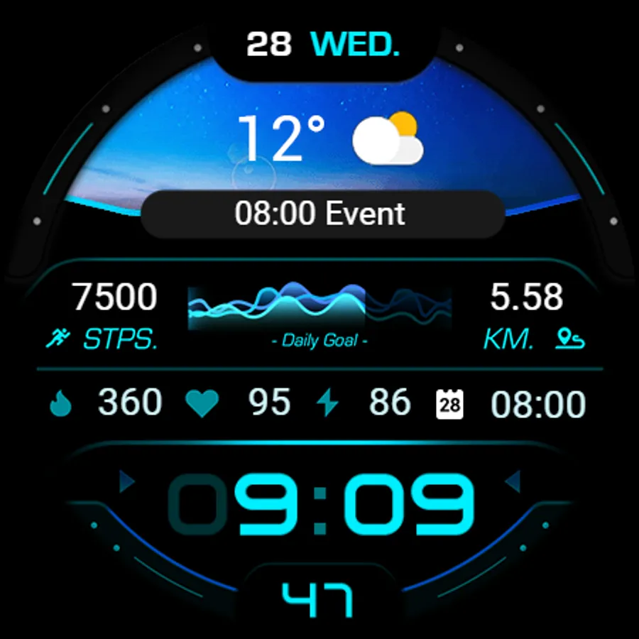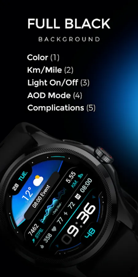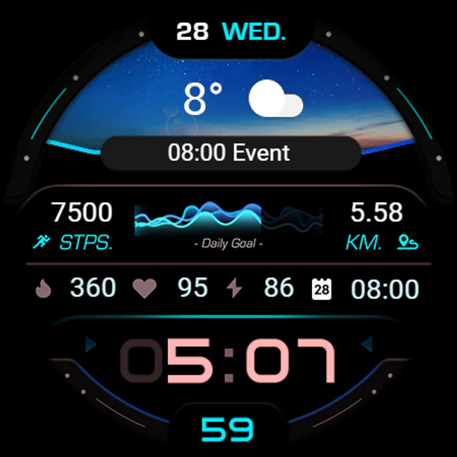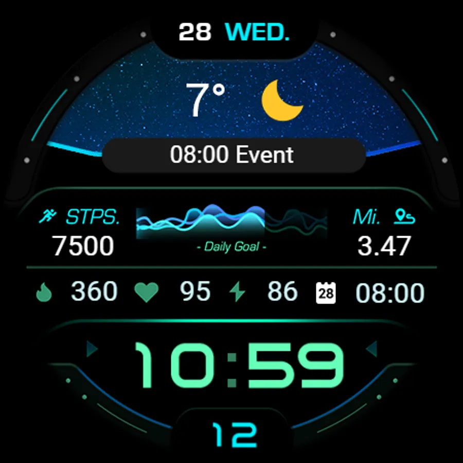 This watch face supports all Wear OS devices with API Level 28+ like Samsung Galaxy Watch 4, Galaxy Watch 5, Pixel Watch etc.