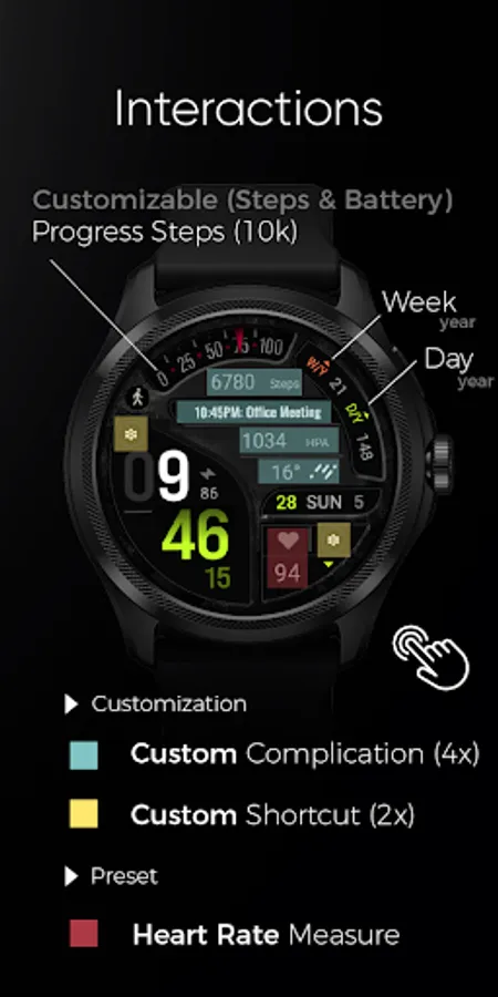 This watch face supports all Wear OS devices with API Level 28+ like Samsung Galaxy Watch 4, Galaxy Watch 5, Pixel Watch etc.